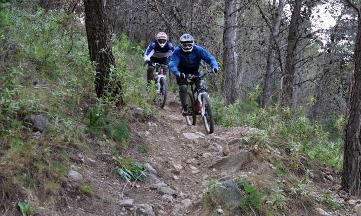 Westman: Den första stigen jag körde på Kern LT i Spanien var en flowig rökare genom en gammal skog. En smal stig med höga buskar på sidorna som bildade en kanal att raila igenom. Jag tyckte cykeln gick som på räls och flinade i hjälmen. De korta kedjestagen och den lilla cykeln kändes som en busig BMX eller 4X-hoj. Efter ett tag kom det en stenkista och då slutade jag flina. Gaffeln tog inte alls udden av den och jag tvärställde nästan styret av rycken. Lite så kan jag sammanfatta cykeln. Buskul geometri för att köra lätt utförslutande stigar, men dålig gaffel med massor av plattform som inte går att stänga av. Bakdämparen likaså, trampeffektiv men lite död. En storlek L med en riktig Lyrik och en mer justerbar bakdämpare hade varit betydligt bättre, tror jag. Problemet med däckfrigång vid bakdämparen hade dock bestått.