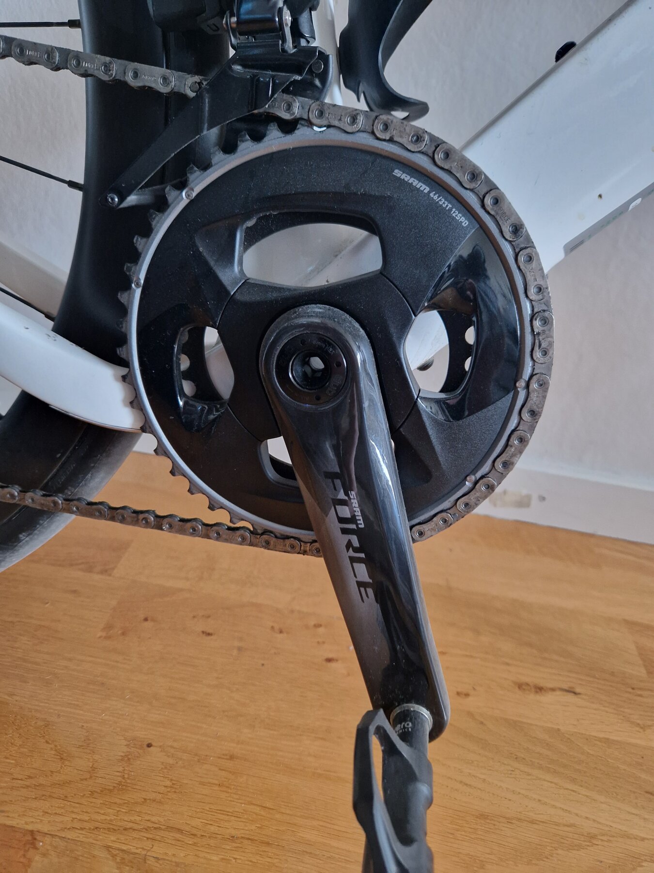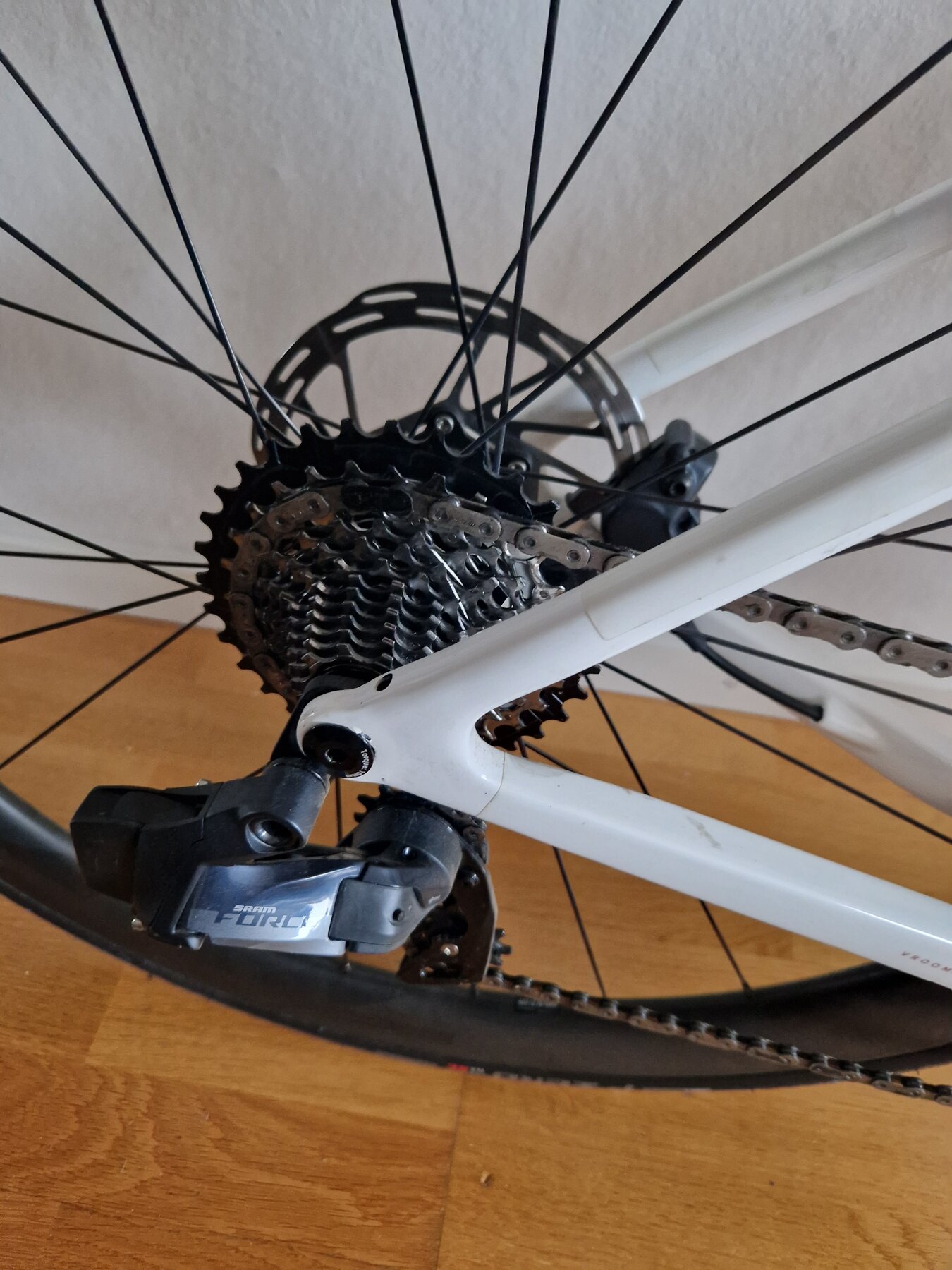 2x12 SRAM Force eTap elektroniska och kabel lösa system. Cykeln har rullat max 200km och servad enligt handbok ( servas som en bil ie baserat på antal km) Säljes/bytes med gravel hjulen. ZIP 303S hjulen har rullat mindre än 500km och har samma kassette som gravel hjulen och kan ingå som option med tillägg på pris. Cykeln säljes/bytes med orginal Fizik sadel. Flaskhållare pedaler, datorfäste med dator, väskor ingår ej. Köptes ny för 95.000 kr och är i nyskick då PPF finns på utsatta ram delar men den har till 99% rullat på gata.