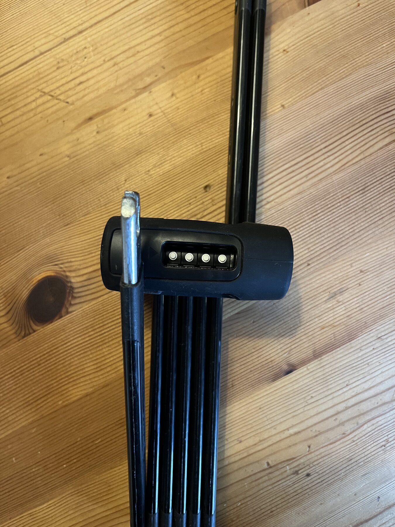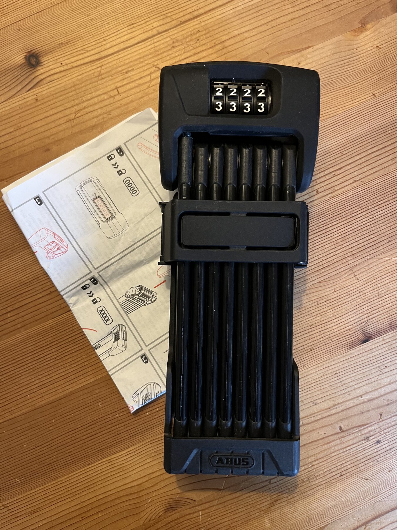 Låset har inte kommit till användning och är i toppskick. Låset är nollställd, bruksanvisning och fäste för ramen medföljer.