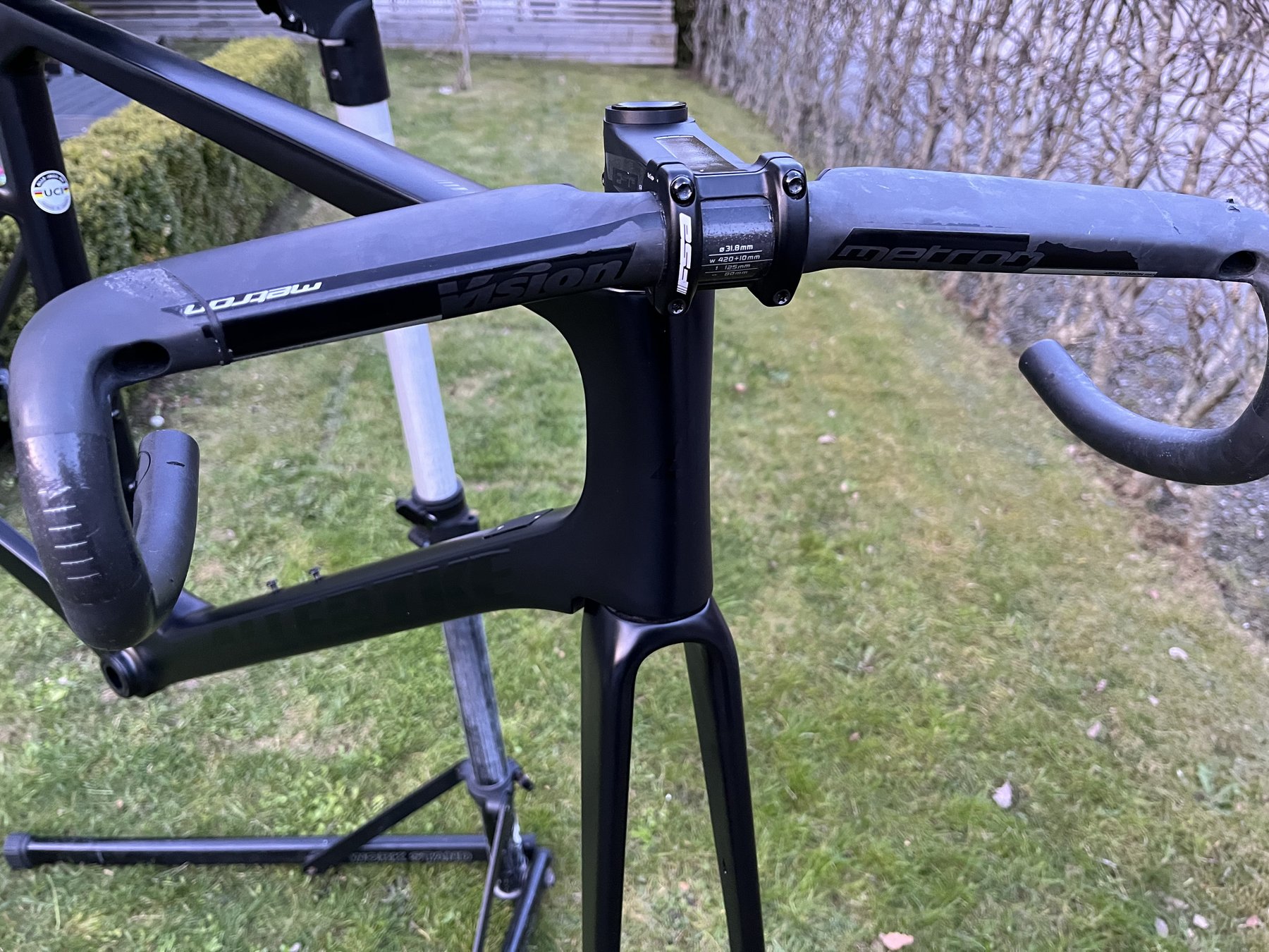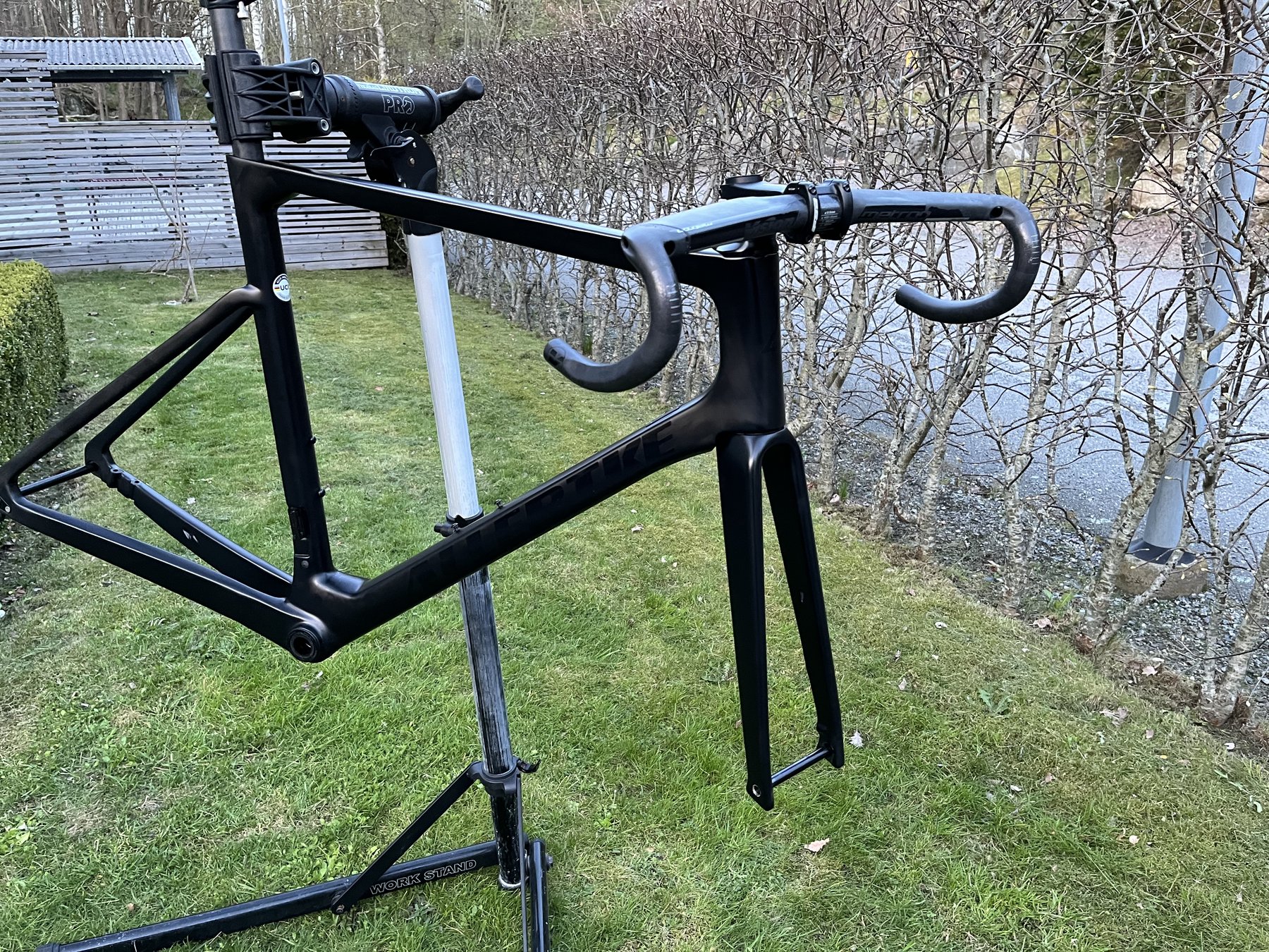 Komplett ram kit med Durace vevlager, hjulaxlar, styrlager och Fsa stryrstam och Vision carbon styre.