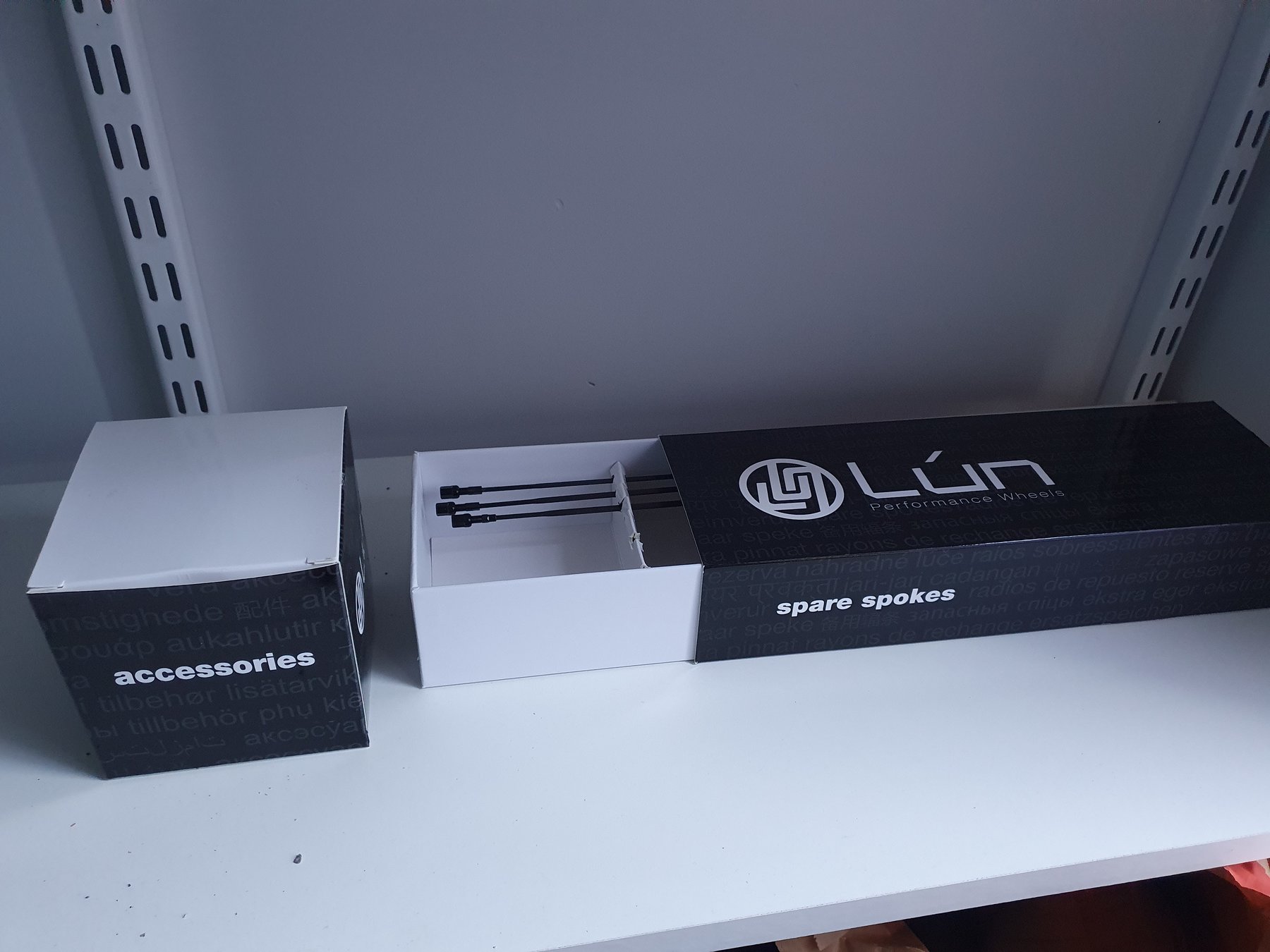 Hjulen kommer med extra ekrar, bromsklossar och ventilförlängare.