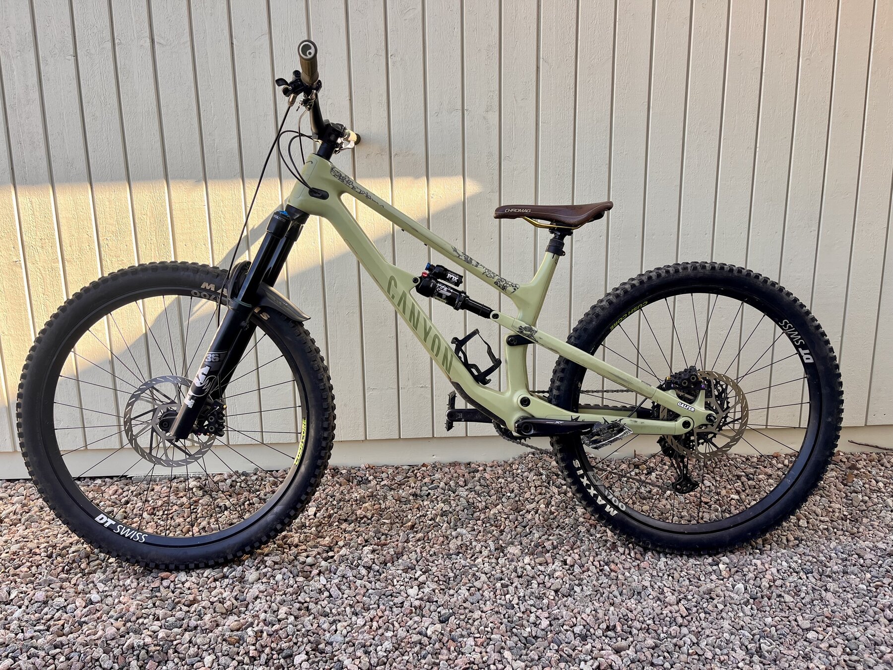 Har använt den till allt från de lokala stigarna till bike park i Ulricehamn och Vallåsen. En aggressiv stigcykel helt enkelt. Köpt ny av mig 2023. Helt ny ram inklusive vevlager, styrlager, länkage 2025.