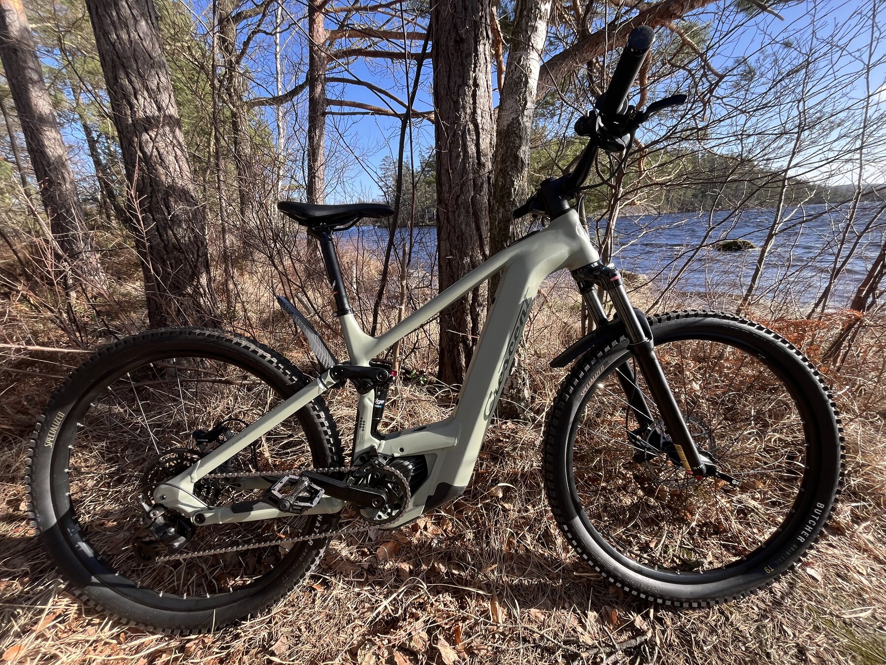 Bytt ut original däcken till riktiga sulor som är tubeless rdy. Ni kan få till tubeless ventiler, fäljtejp och tubeless-vätska allt ifrån muck-off. Cykeln är köpt i slutet på mars så cykeln är verkligen i nyskick.
