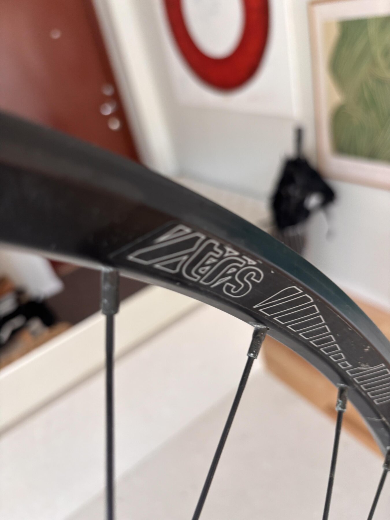 Är i fint begagnat skick. Är använt, så självklart finns lite småmärken på fälg och någon dekal är lite fransig men rakt och fint. Har fälgband för tubeless installerat.