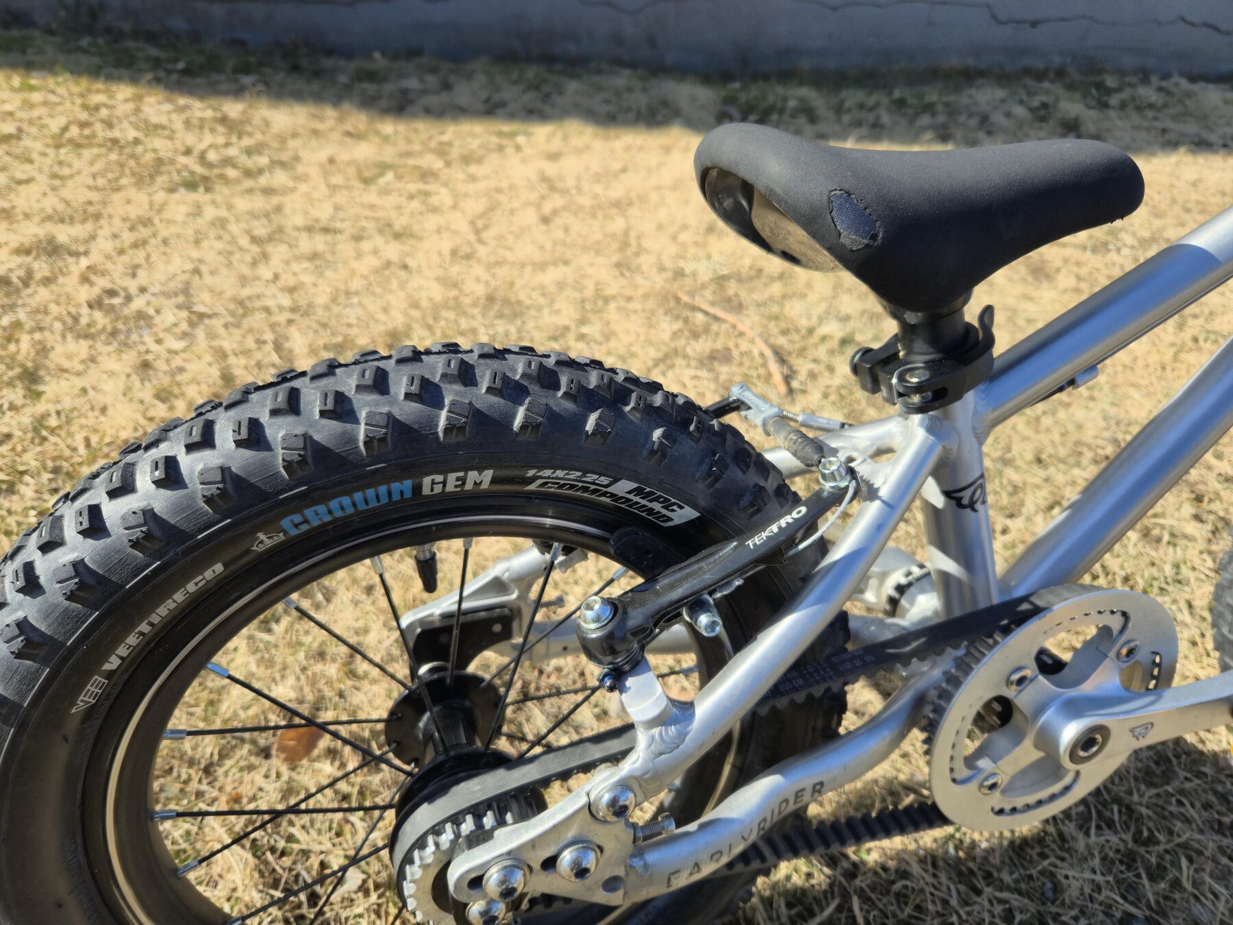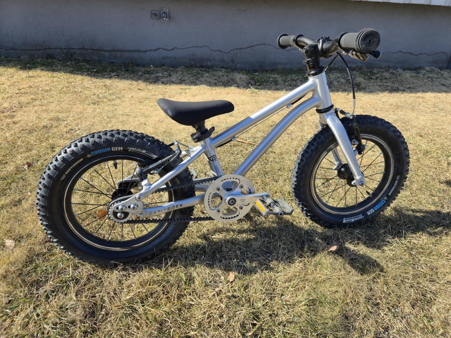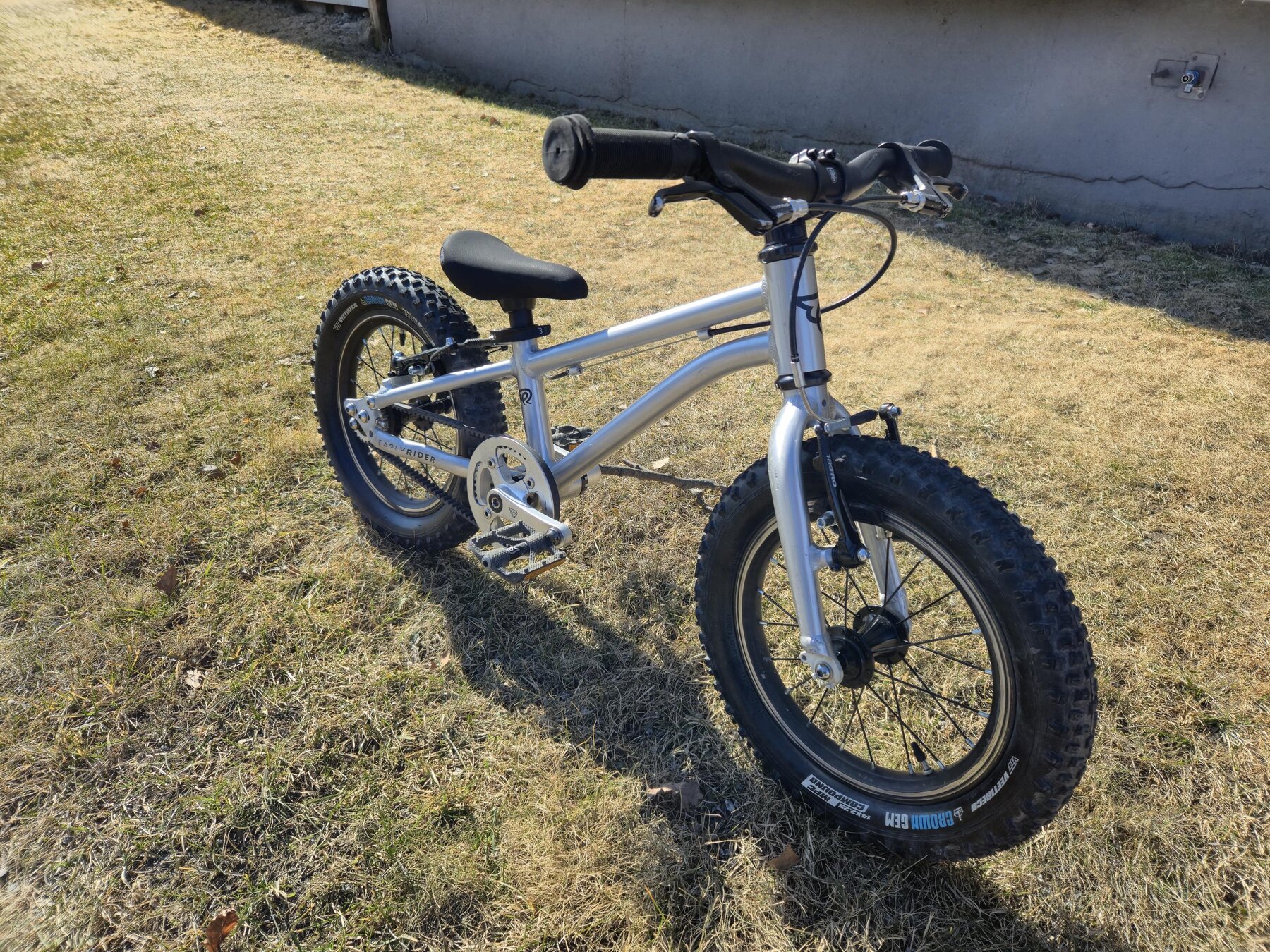 Perfekt som första cykel. Låg vikt, genomtänkt geometri, barnanpassade komponenter, frihjul, handbroms fram och bak samt det bästa: remdrift (ingen smutsig kedja eller underhåll) helt enkelt en perfekt första cykel.