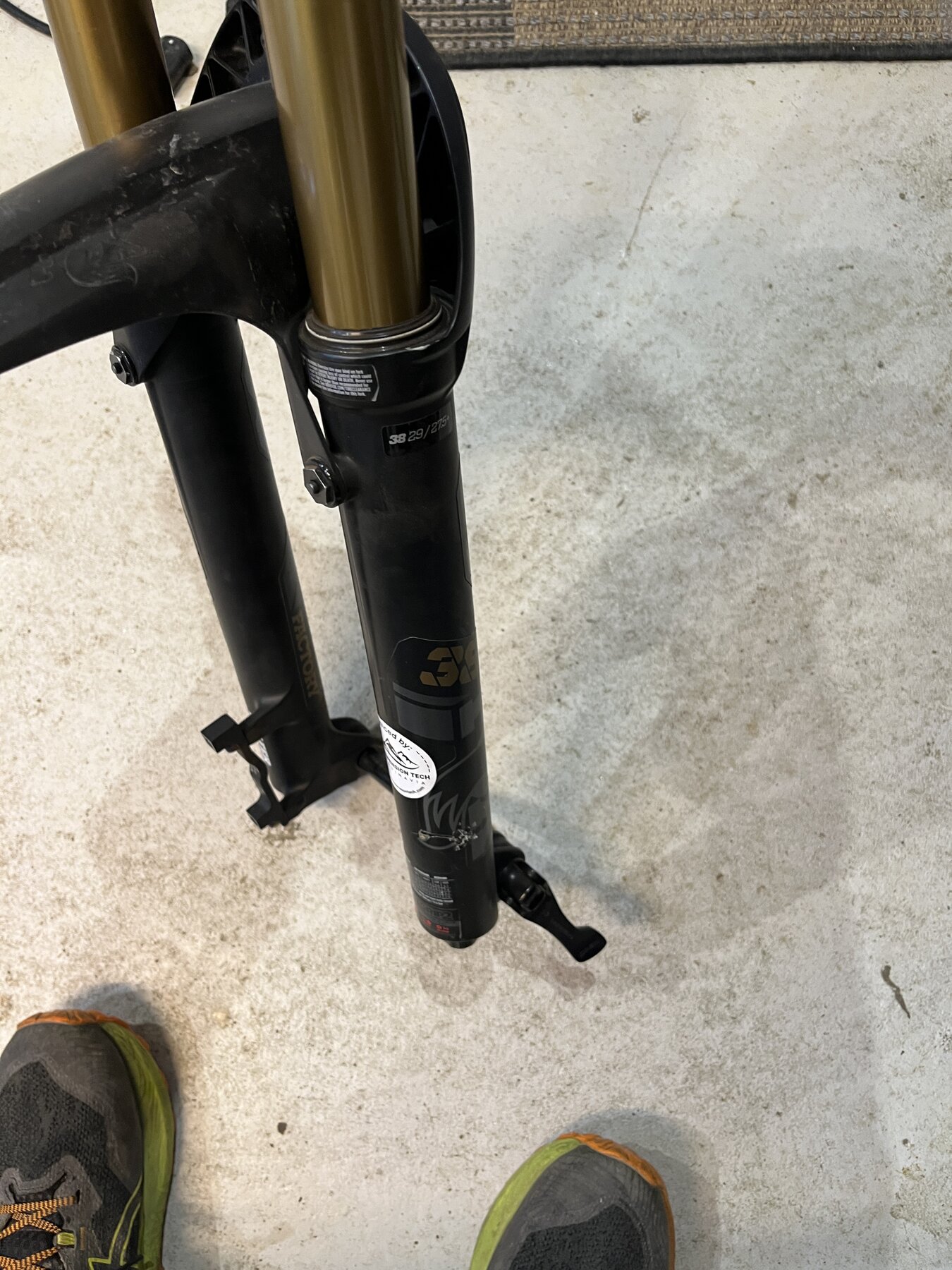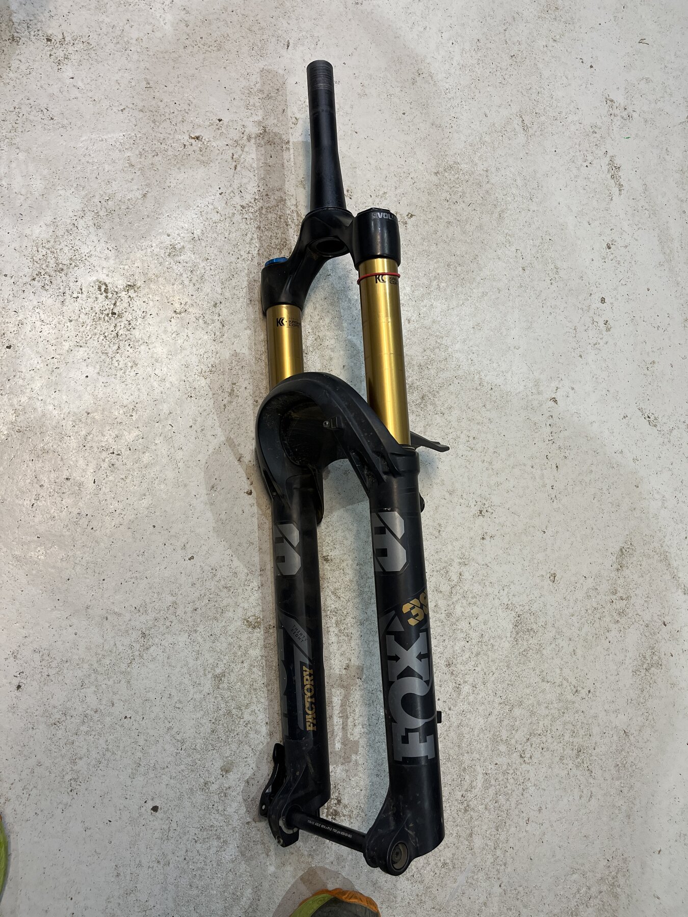 Servad (stor service) efter förra säsongen och körd ca 40h efter. Gaffeln har ett nytt styrrör och tyvärr en liten repa från pressen.