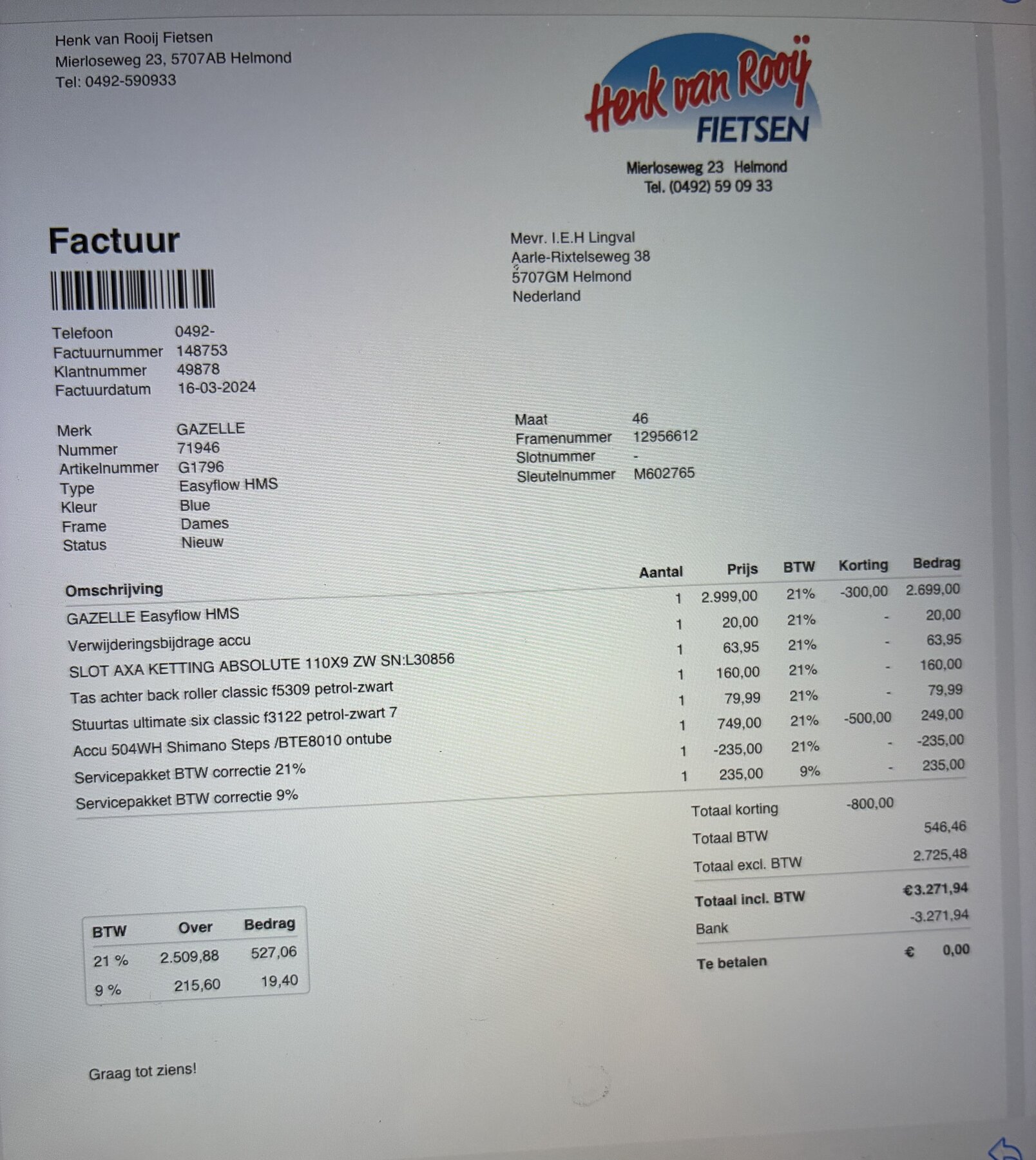 Cykeln är oanvänd, inköpt i cykellandet Nederländerna för två år sedan, stått inomhus hela tiden, säljs med samtliga tillbehör som väskor etc.