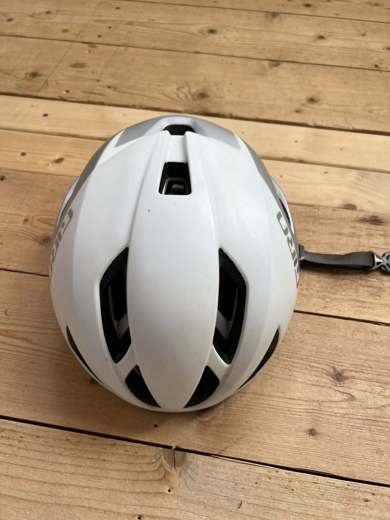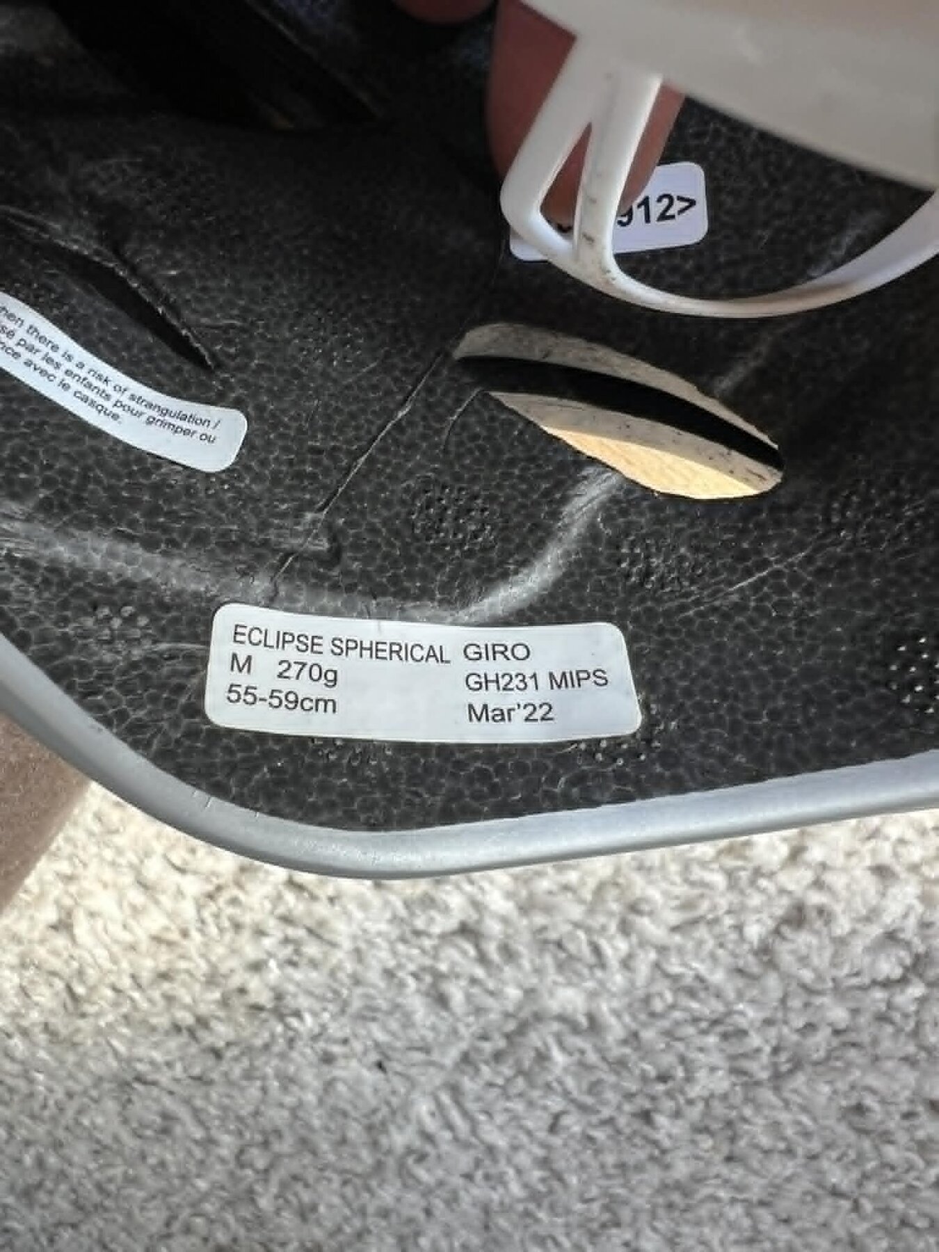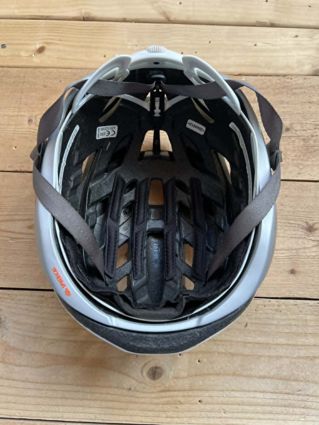 Hjälmen är i fint skick men paddingen mot pannan är sliten och kan behöva bytas.