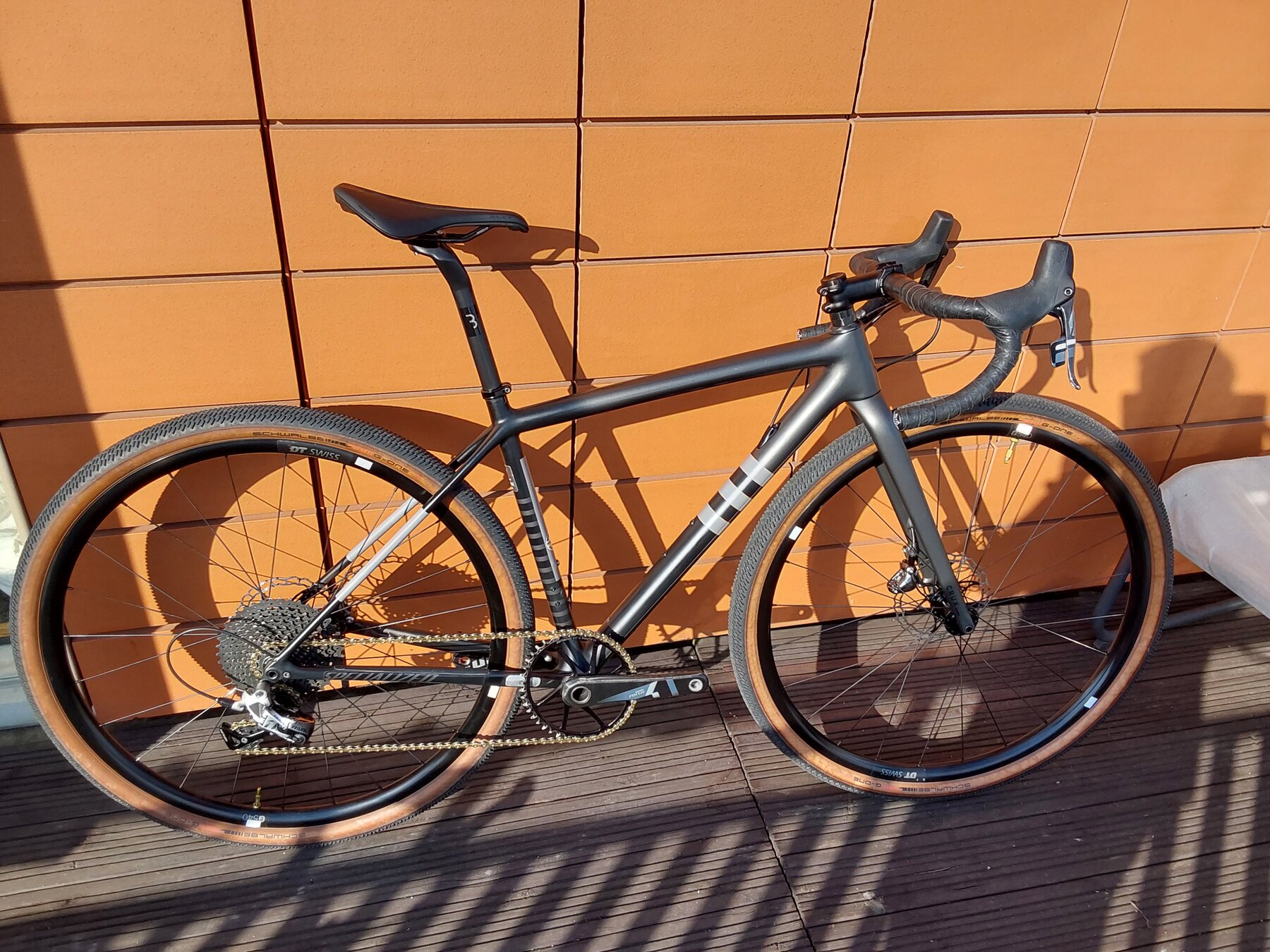 Hjulen har rullat ca 300 mil. DT swiss GR 540 med Schwalbe G- one R däck45 mm, tubless monterade.