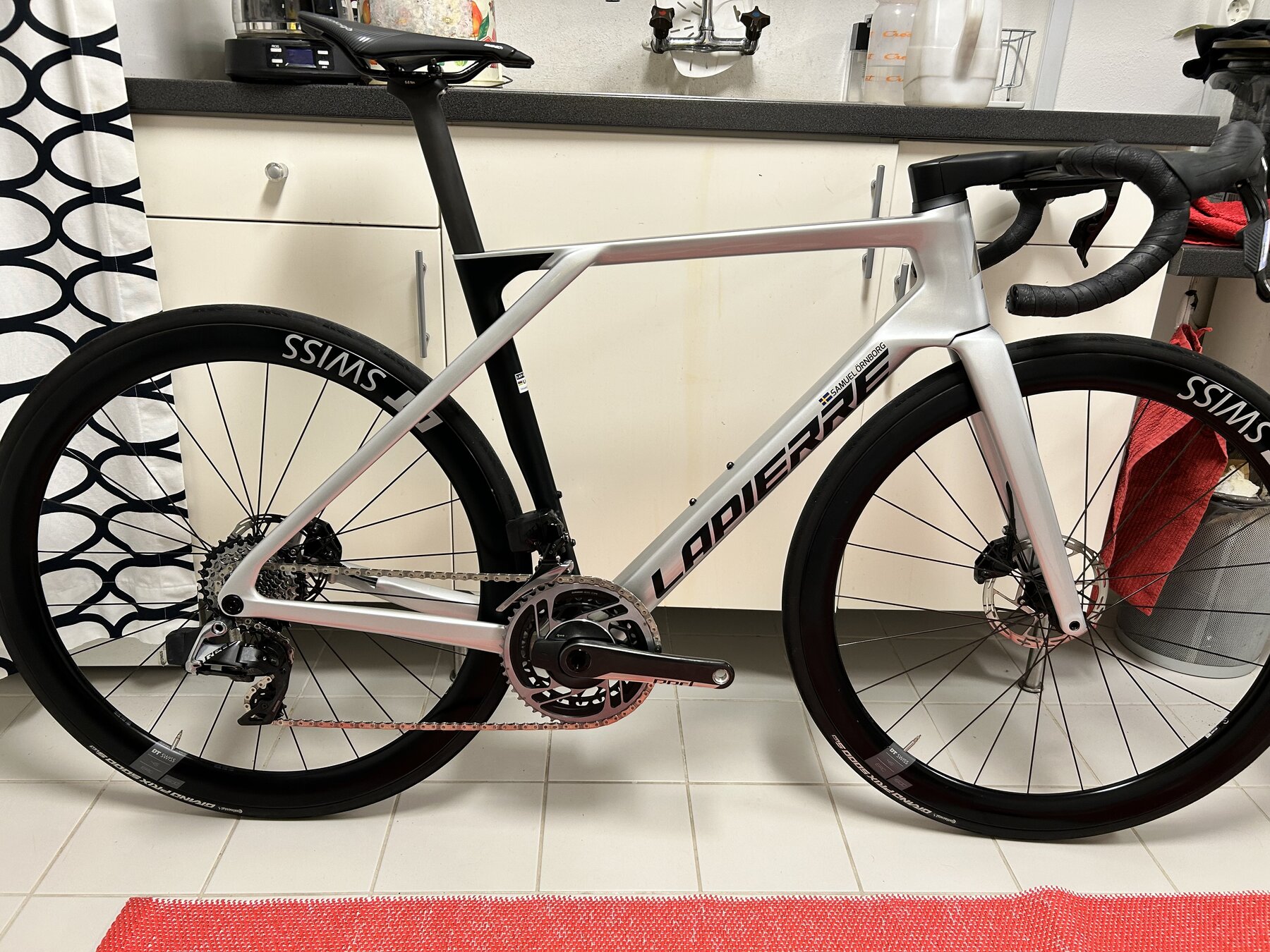 DT swiss Carbon hjul, Quarq Effektmätare, Integrerad Cockpit med datorfäste.