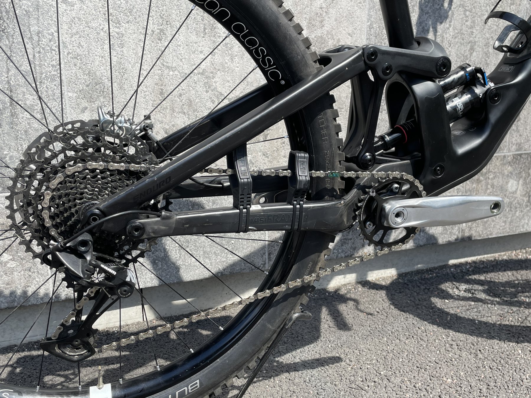 - Drivlina: SRAM NX (GX vevar och Kedja)
