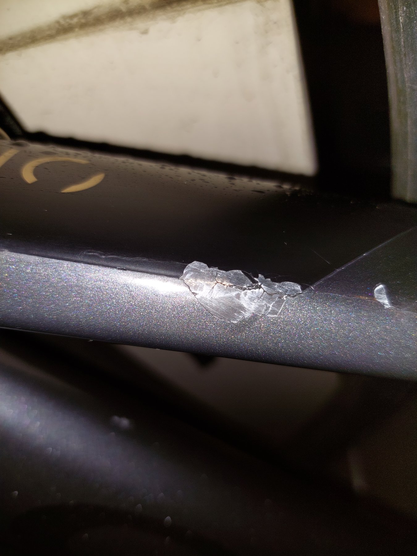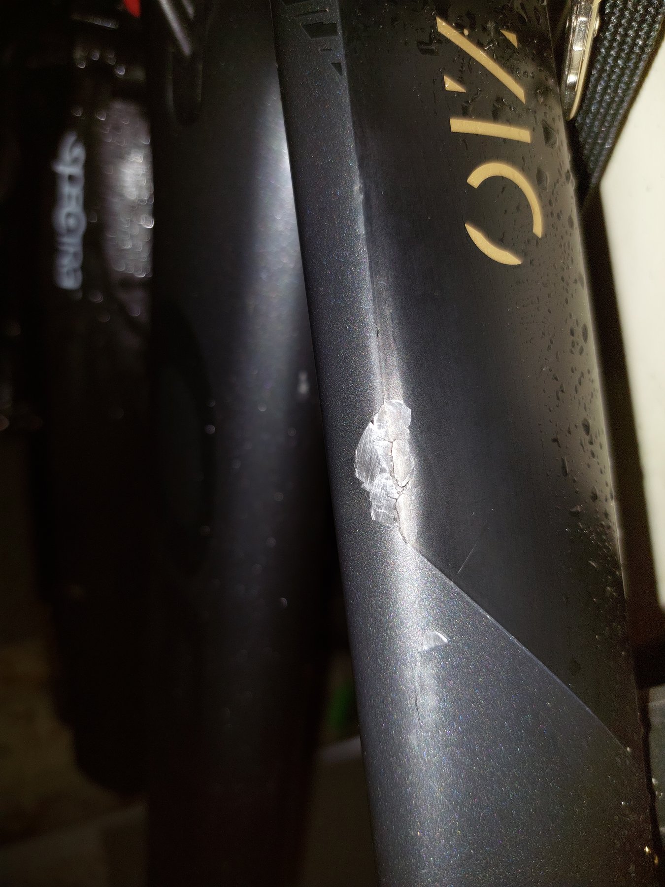 Finns lite små repor och en större, vet ej hur mycke carbonen påverkats av den, därav priset.