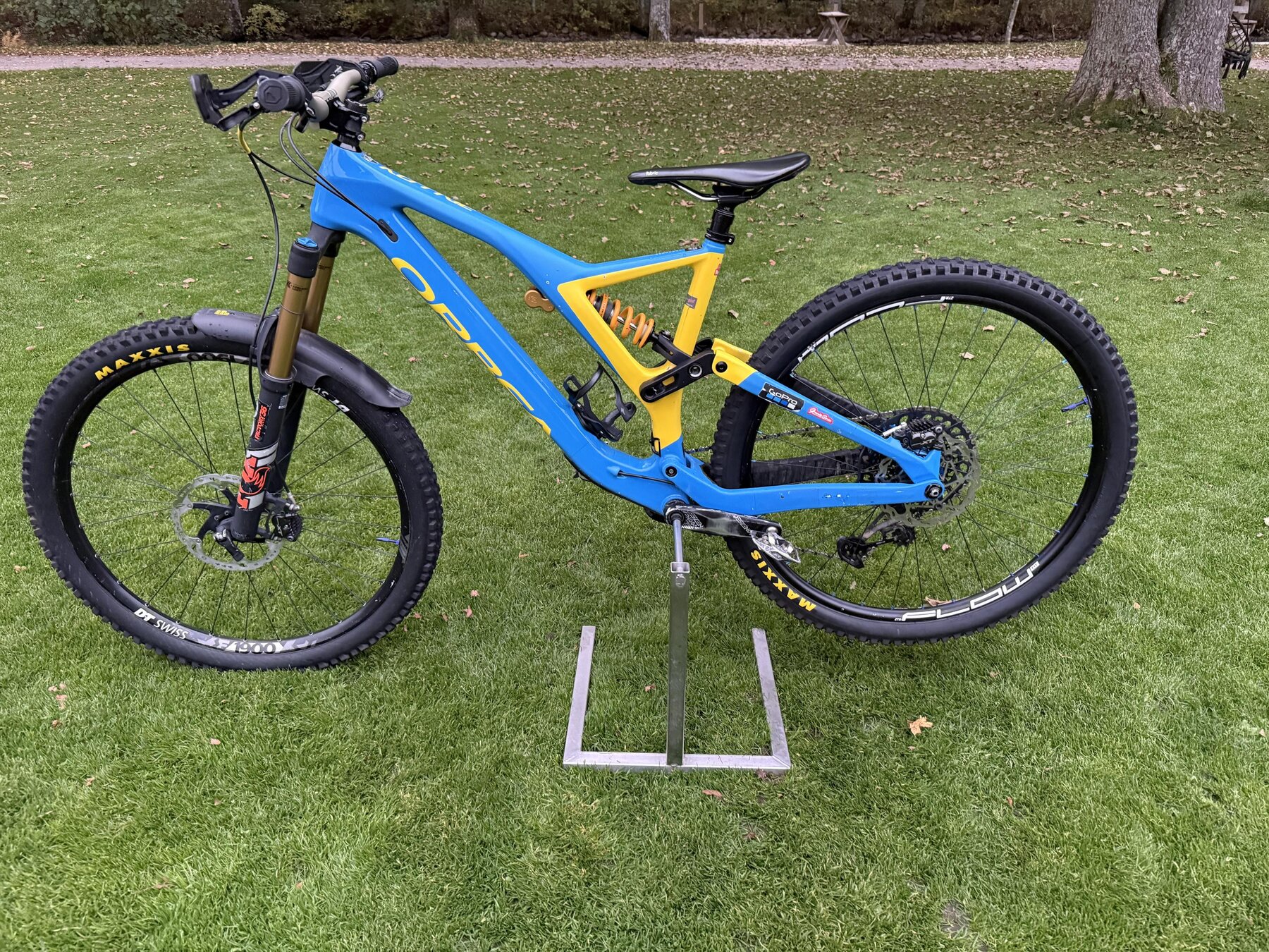 Uppgraderad med nyare geometrin för 160mm slag bak. Öhlins TTX coil men även original Fox med Kashima coating medföljer.
