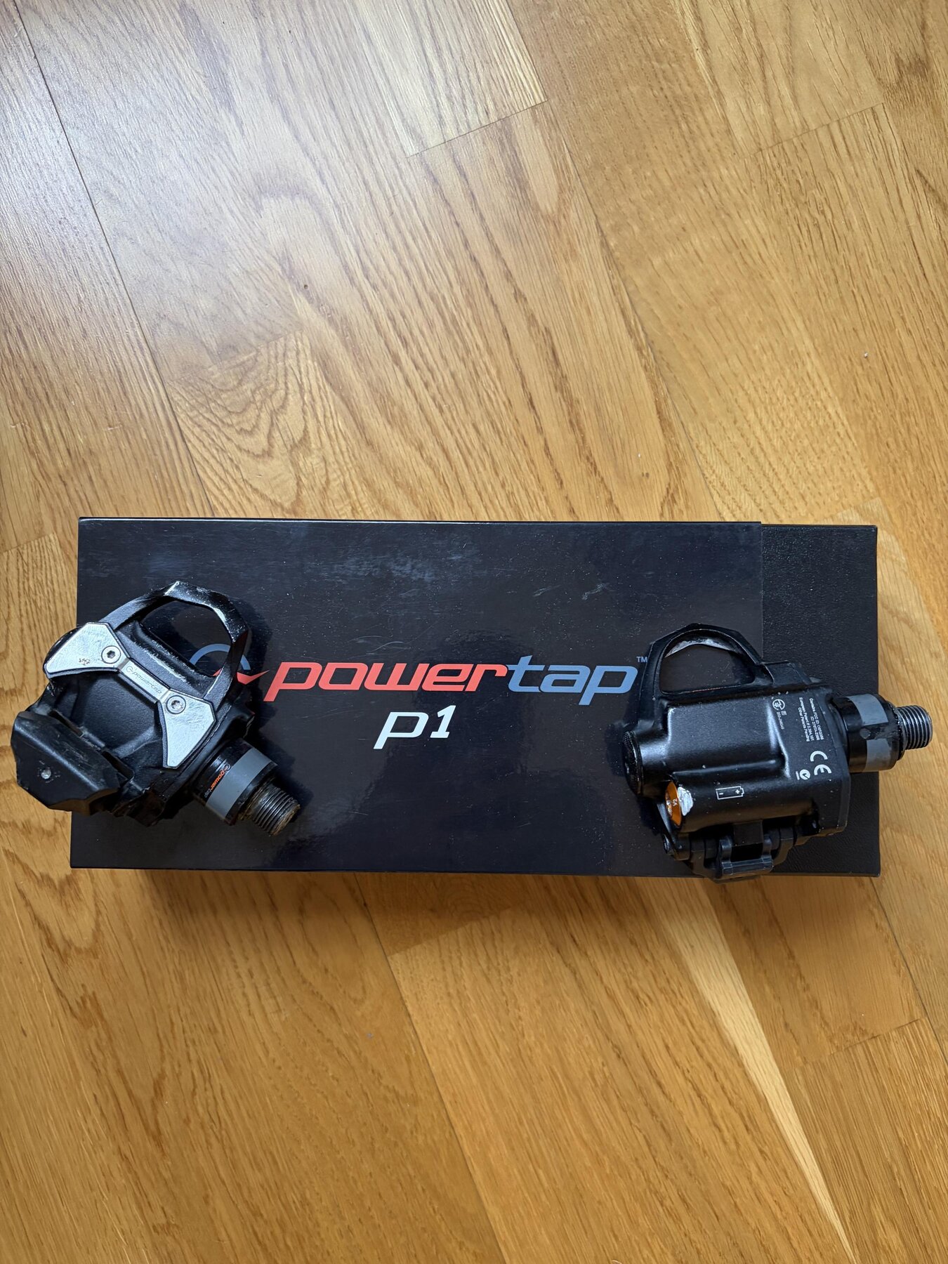 Mäter bra, behöver nya batterier (AAA). Ena pedalen är skrapad i sidan, men fungerar utan bekymmer. Har ett par slitna men funktionella klossar och ett par sprillans som medföljer.