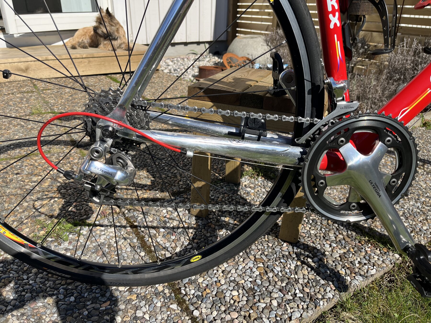Gruppset: Shimano Ultegra 10 delat. Klingor 50/38, kassett 12-26.