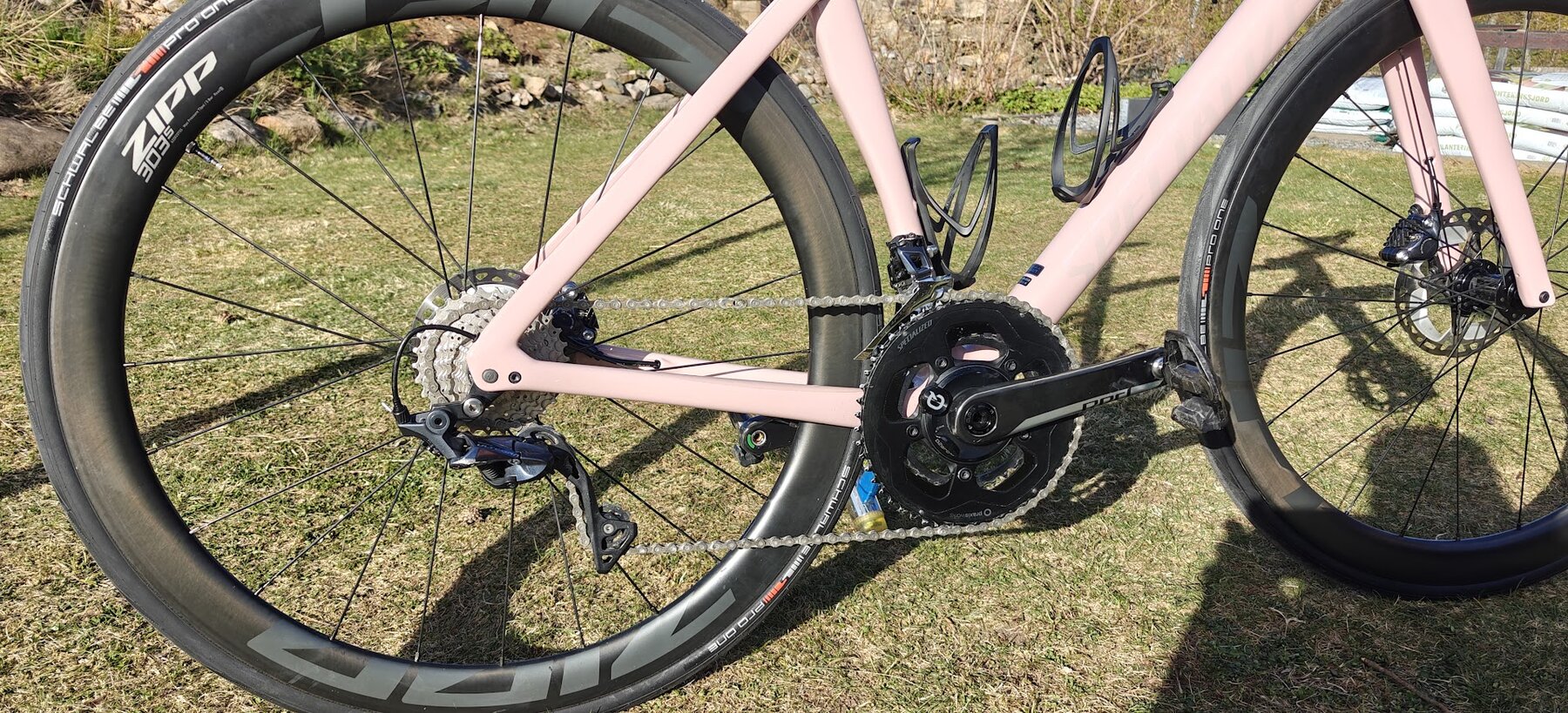 Zipp 303s hjul uppsatta tubeless med helt nya Schwalbe Pro One 28mm däck