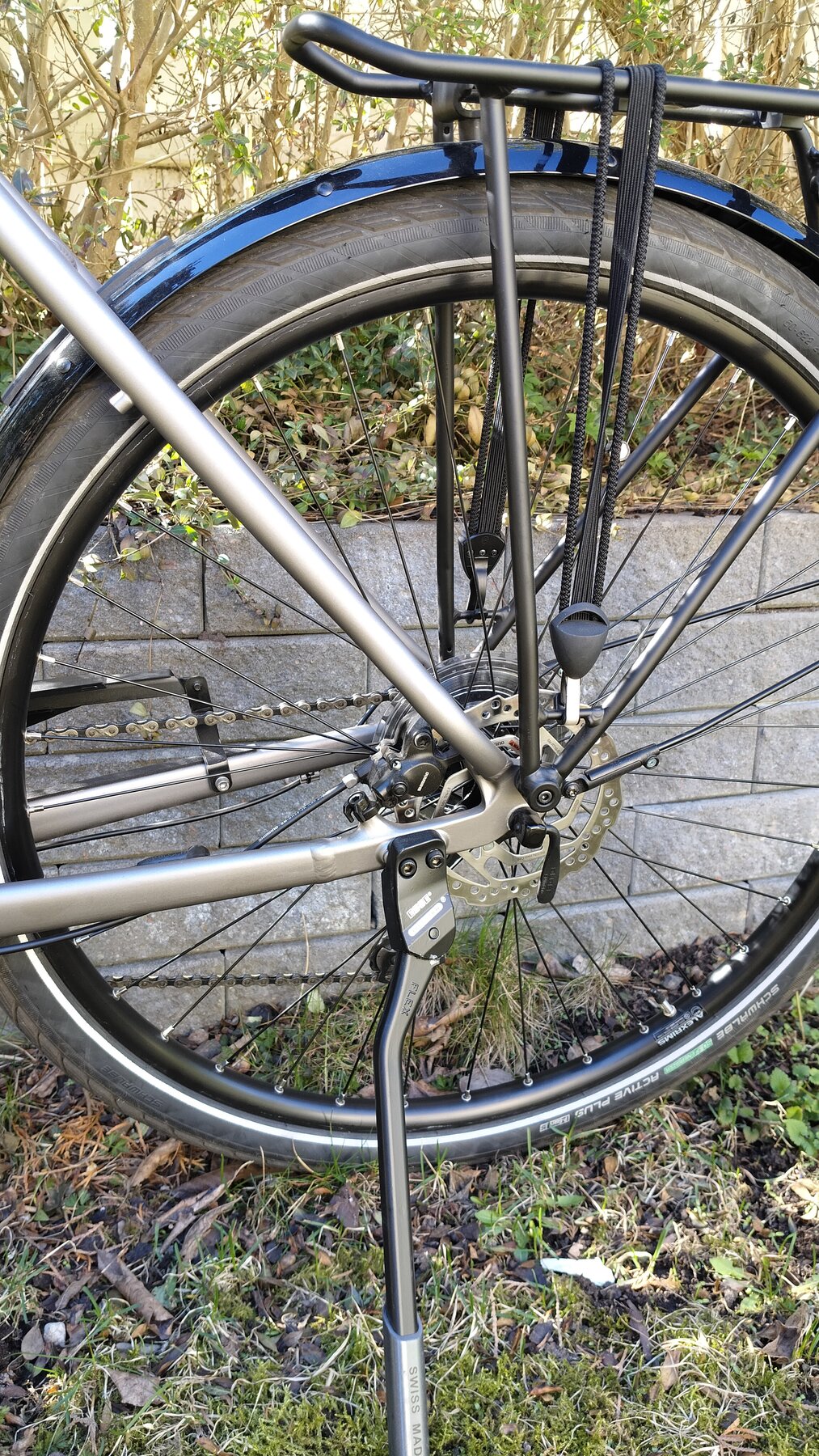 Utrustad med skärmar, pakethållare, kedjeskydd, stöd samt belysning