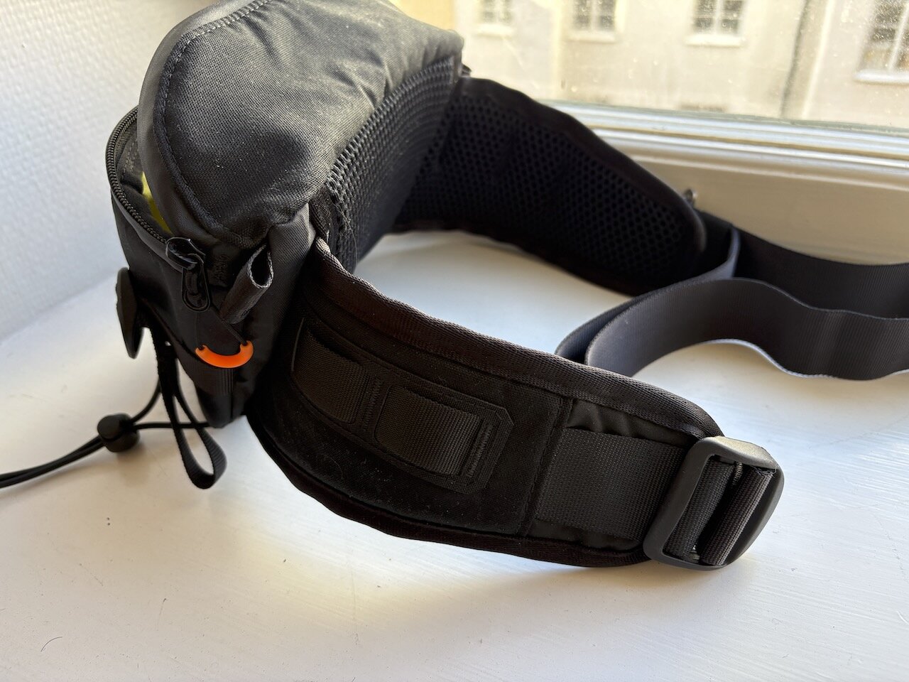 “Comfort was key when designing this bag. As well as a structured and highly padded back panel, Oglah’s main buckle is positioned on the wide padded wing and away from your tummy for maximum all day comfort. The belt will fit waists up to 55” / 140cm.”