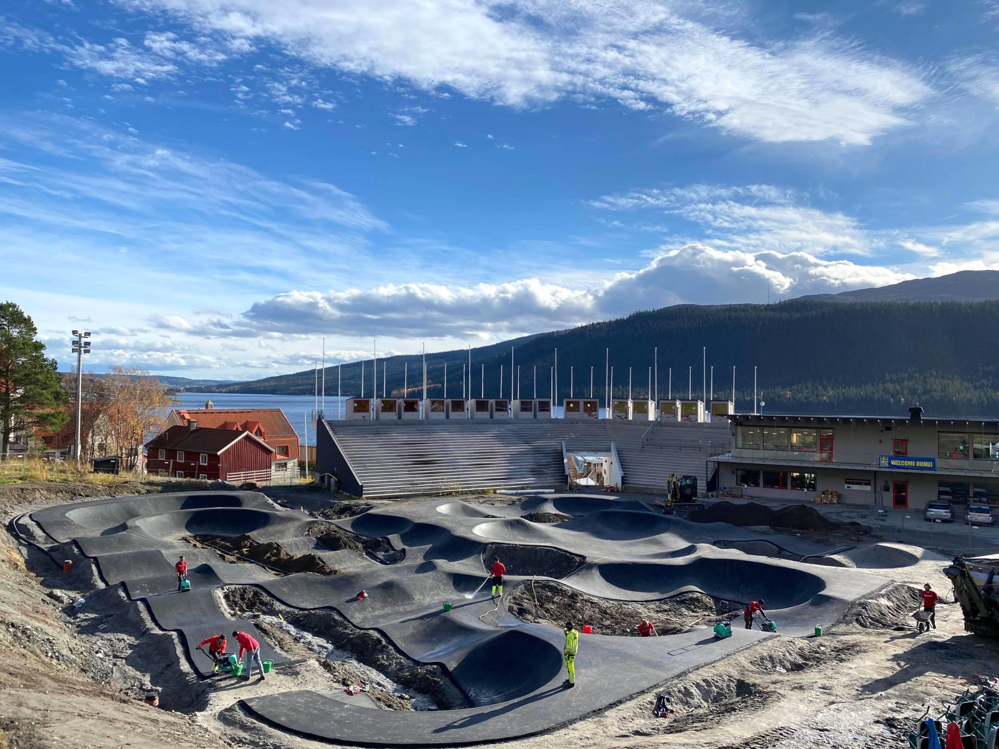 Tobias LiljerothPumptrackent tar form vid Åresjön.Placeringen i Sveriges nationella Alpina Arena, som är mest känd för alpina World Cup och VM tävlingar, gör att gäster kan ta del av den existerande infrastrukturen med läktare, belysning, parkeringsplatser och toaletter även på sommarhalvåret. Arenan är tämligen väl placerad för att arrangera pump track-tävlingar och Åre Bergscyklister har redan lockat till sig VM bästa sommar. Addera dessutom vacker sjöutsikt på detta. Mumma.