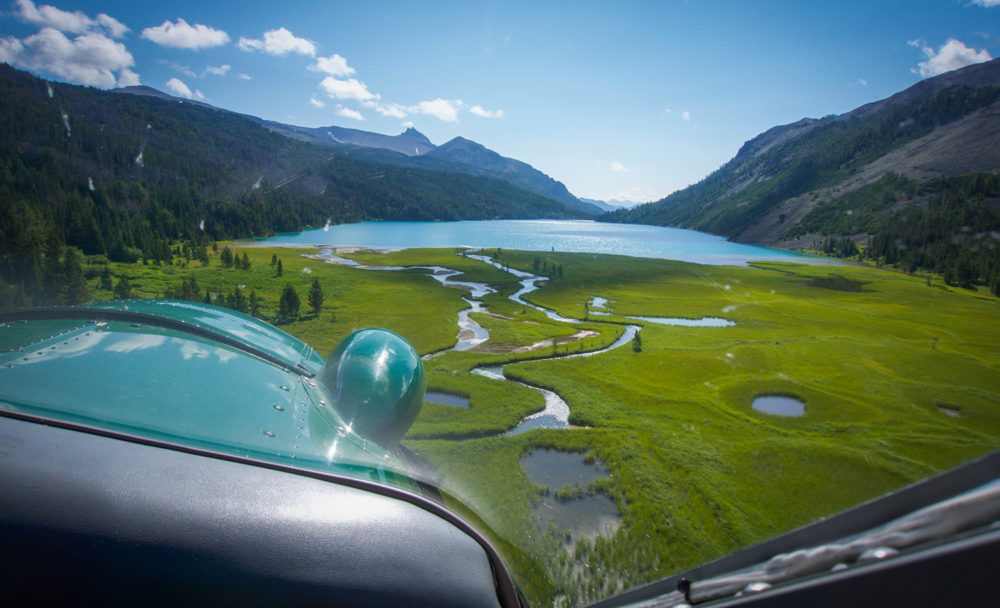 Robin Wallner, Lina Skoglund, Steve Murphy och jag andas in i ett unisont ”gulp” när vinden får planet att kränga till nära en stenig bergsvägg. Att sitta i ett litet plan högt ovanför ett vildmarksområde är häftigt och läskigt på samma gång. Planet känns otroligt litet och aningen gammalt. Piloten förklarar stolt att det är från 1963 och försäkrar oss om att det är betydligt bättre och säkrare än dagens modeller. Det är häftigt att se hur han behärskar det lilla planet och styr det med säker hand genom steniga bergsplatåer och över blåsiga bergstoppar.
