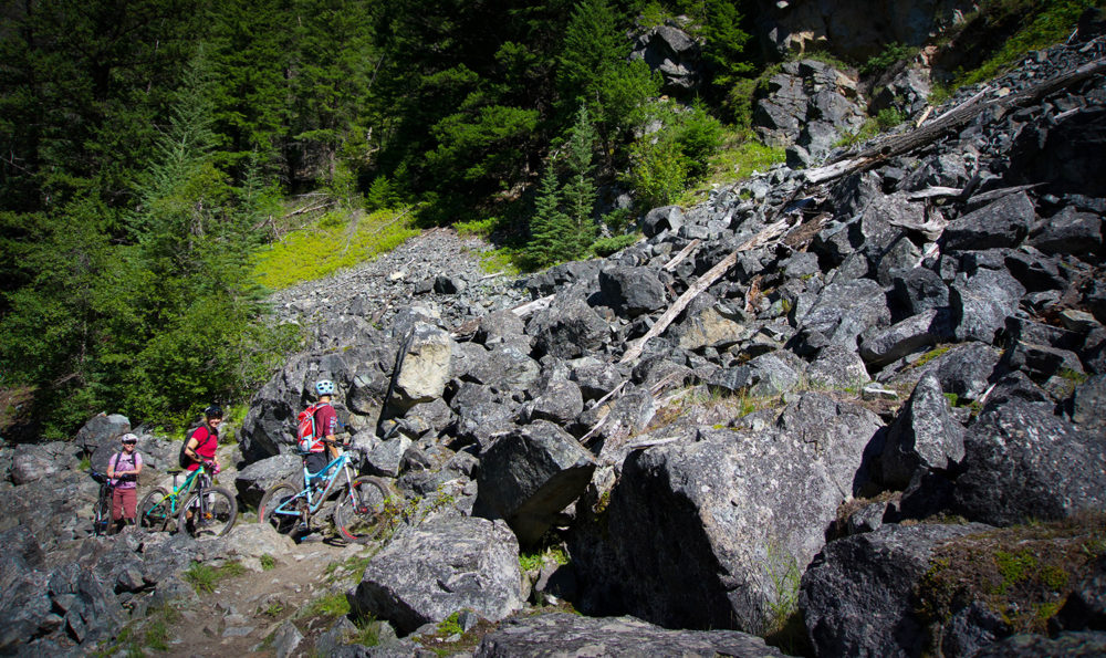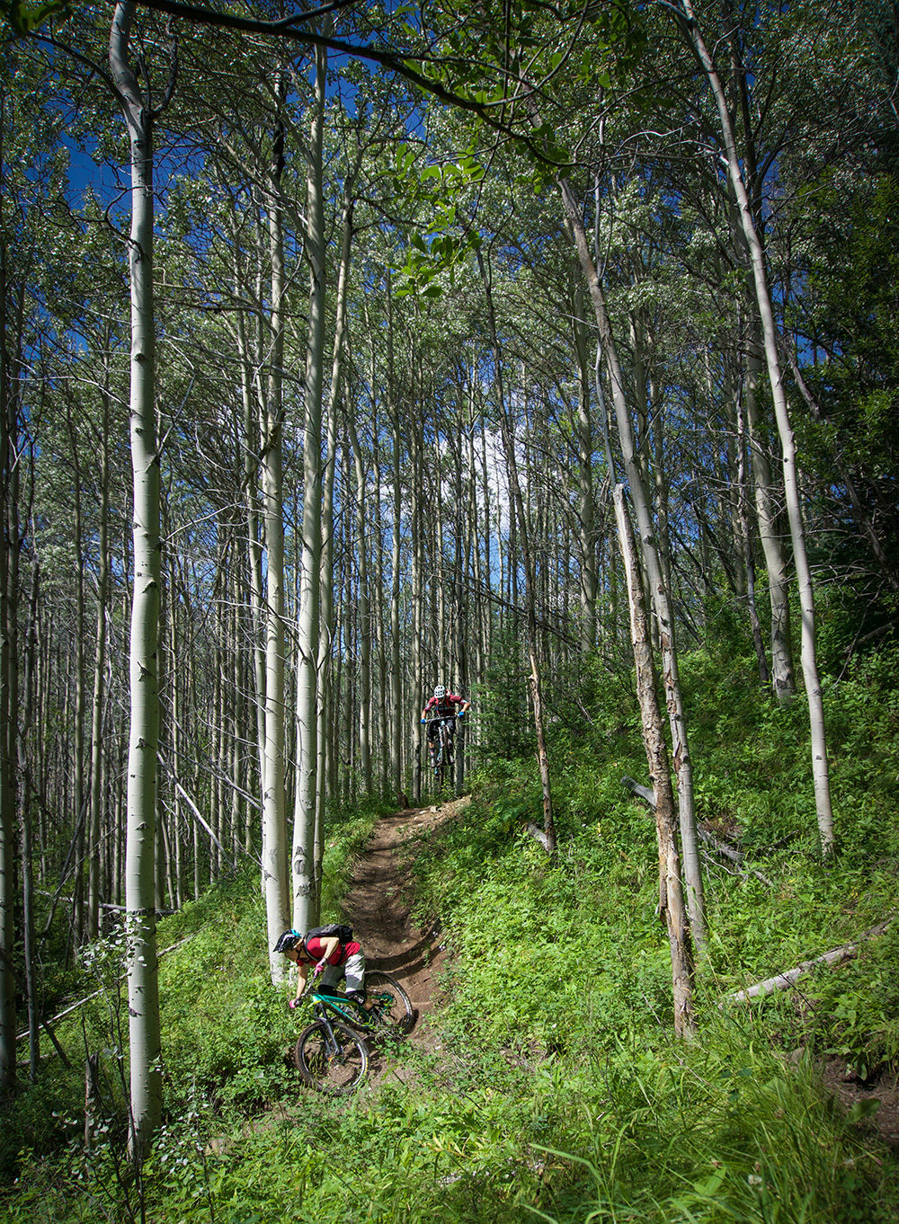 Stigen slingrar sig längs med steniga bergssidor. Framför oss skymtar en grön dal och bakom oss höjer sig bergen ur det klara vattnet och gröna ängarna och skapar landskap man bara ser på ett fåtal ställen i den här världen. Stigen fortsätter in i skogen och ut i öppna landskap. Vi trodde att största delen var utförsorienterad men det visar sig snart att stigen går lika mycket uppför som utför. Trots det finns en del riktigt fina och flowiga partier där stora leenden sprider sig på allas läppar.