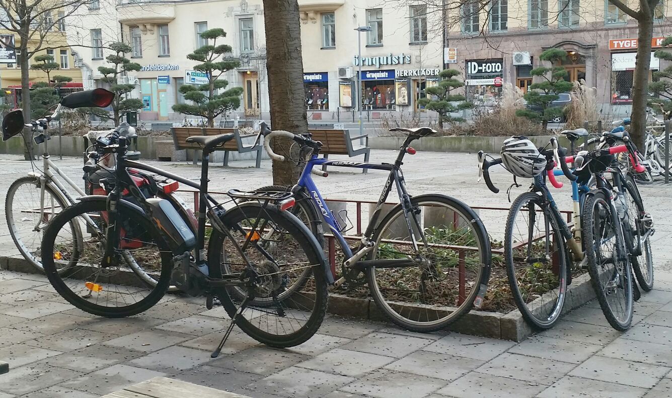 flogganteAnvändaren floggante fick batteritorsk på vägen hem.Testpiloten dabac har här parkerat den eldrivna Elton med sitt raka styre bland de mer krullhornade bekanta. Inga tjuvnyp verkar dock ha utdelats.
