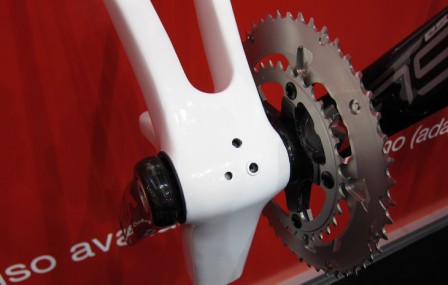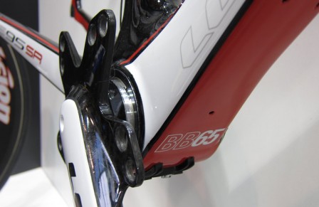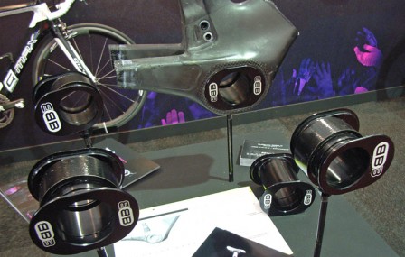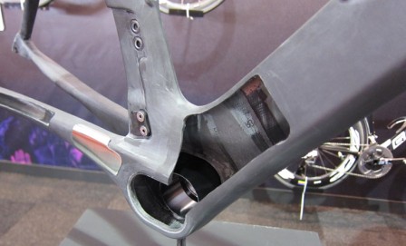 BB3 kräver en speciell ram. Den stora vevlageröppningen möjliggör att få in och gömma undan batteriet till Di2 i ramen. Standarden är öppen och några andra tillverkare uppgavs vara intresserade.