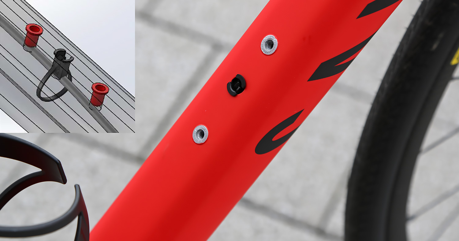 Som en extra säkerhet mot skallrande slangar har Canyon kommit på en ny patenterad lösning. Mellan flaskställsskruvarna på diagonalröret finns ytterligare ett hål i ramen. Detta hål har plats för ett buntband som träs ner och bildar en ögla som dras åt och håller fast bromsledningen mot ramen. Vid byte av bromsledning gör konstruktionen det enkelt att dra upp buntbandet, klippa av det och sedan montera ett nytt.