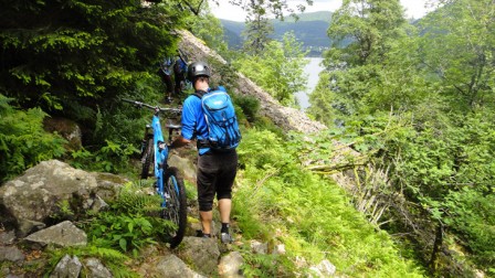 Återstoden av dagen ägnade vi oss åt att testa cykeln på Enduro-liknande banor. Veckan innan vårt besök hade franska Enduro-cupens deltävling Enduro des hatues Vosgues gått i bergen runt La Bresse. Vi körde en av delsträckorna, som var ca 8-10 minuter lång med 500 meters utförsåkning av varierad karaktär, med två klättringar på totalt dryga 100 höjdmeter inlagda. Utförslöporna varierade från skråande halvflacka single tracks som inbjöd till hög fart, till brantare leriga sektioner med stenkistor och rotmattor. En värdig utmaning och en lämplig testbana för en All mountain-cykel, såväl som cyklist.