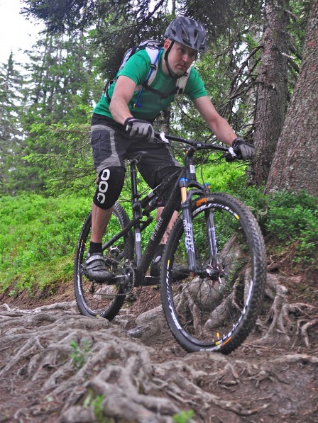 Väl uppe bjöds det på stig som skulle göra rotmattorna i Hellas gröna av avund. En extremt rotig och teknisk stig inne i skogen slingrade sig längs bergskanten med små korta klättringar och utförskörningar. Root Miller gör verkligen själ för namnet. På rotig stig är cykeln riktigt i sitt esse och är lätt att få med sig över tekniska partier. Med det låga styrhuvudet känns Root Miller smidigare än tidigare testade 120/130 mm 29ers och ger inte samma stora massiva intryck. Den ökade vevlagerhöjden jämfört med Dr Z gör att cykling i stök nu kan utföras på mer normalt sätt.