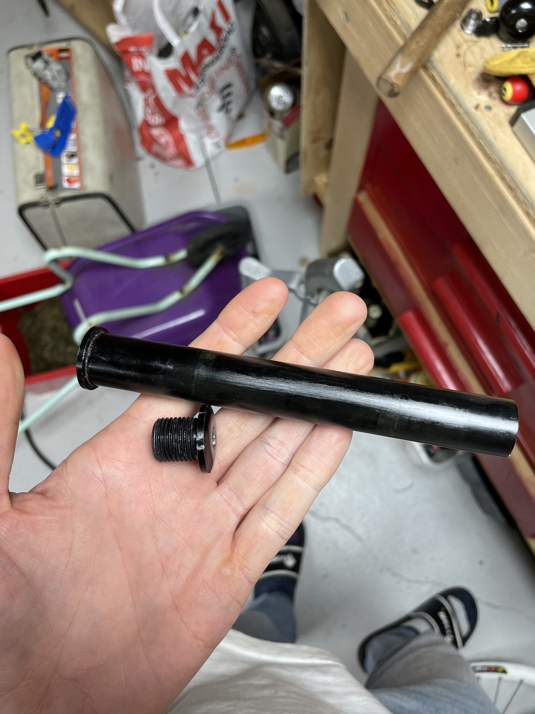 Jag köpte en begagnad cykel med en Marzocchi DJ2. Denna har en 20mm genomgående axel där endcaps(?) skruvad på med insex. Dessa är inte längre sexkantiga utan närmre runda vilket kan ställa till problem framöver. Går det att få tag på en liknande axel att byta mot eller ännu bättre, bara de trasiga delarna?