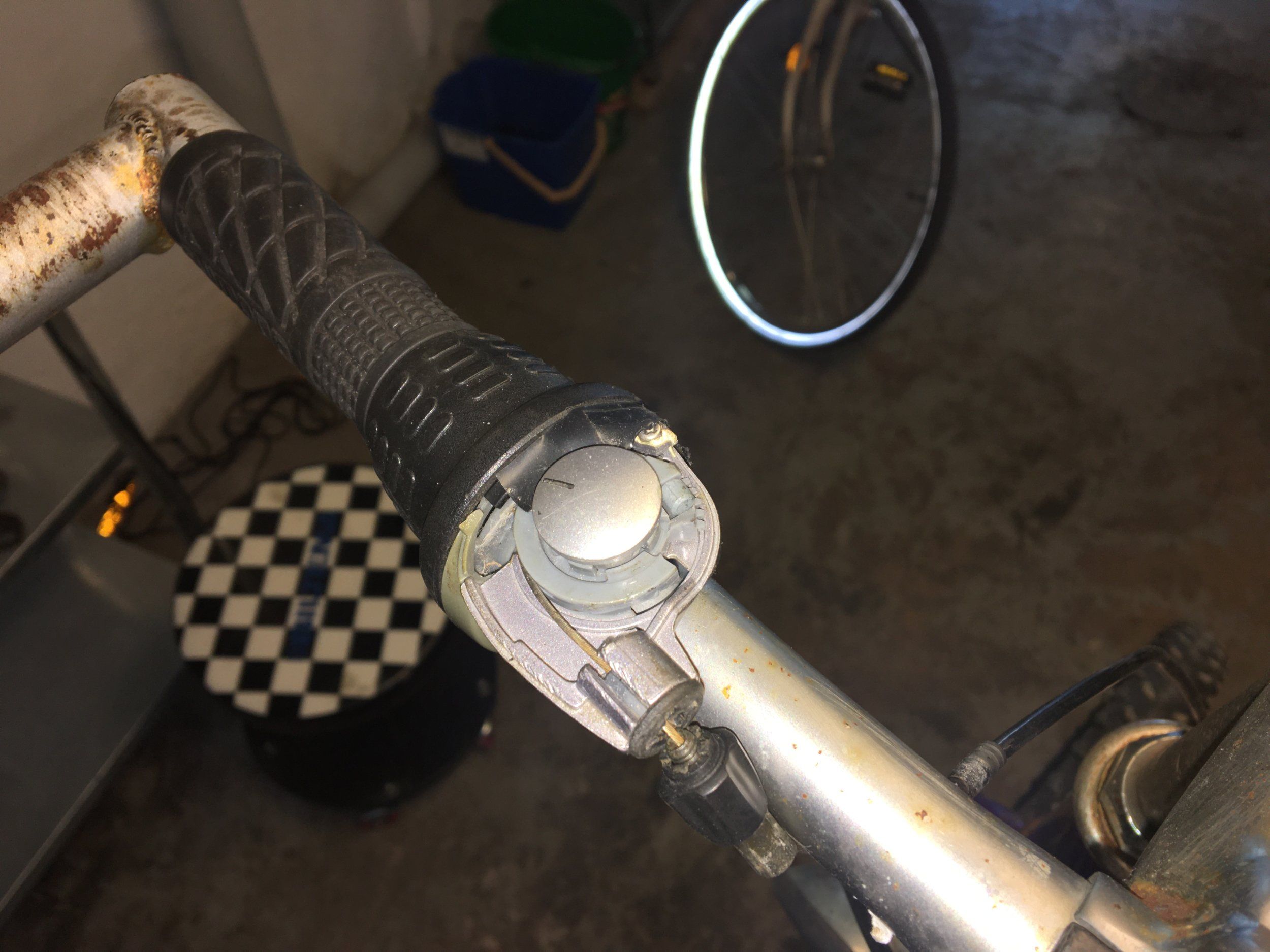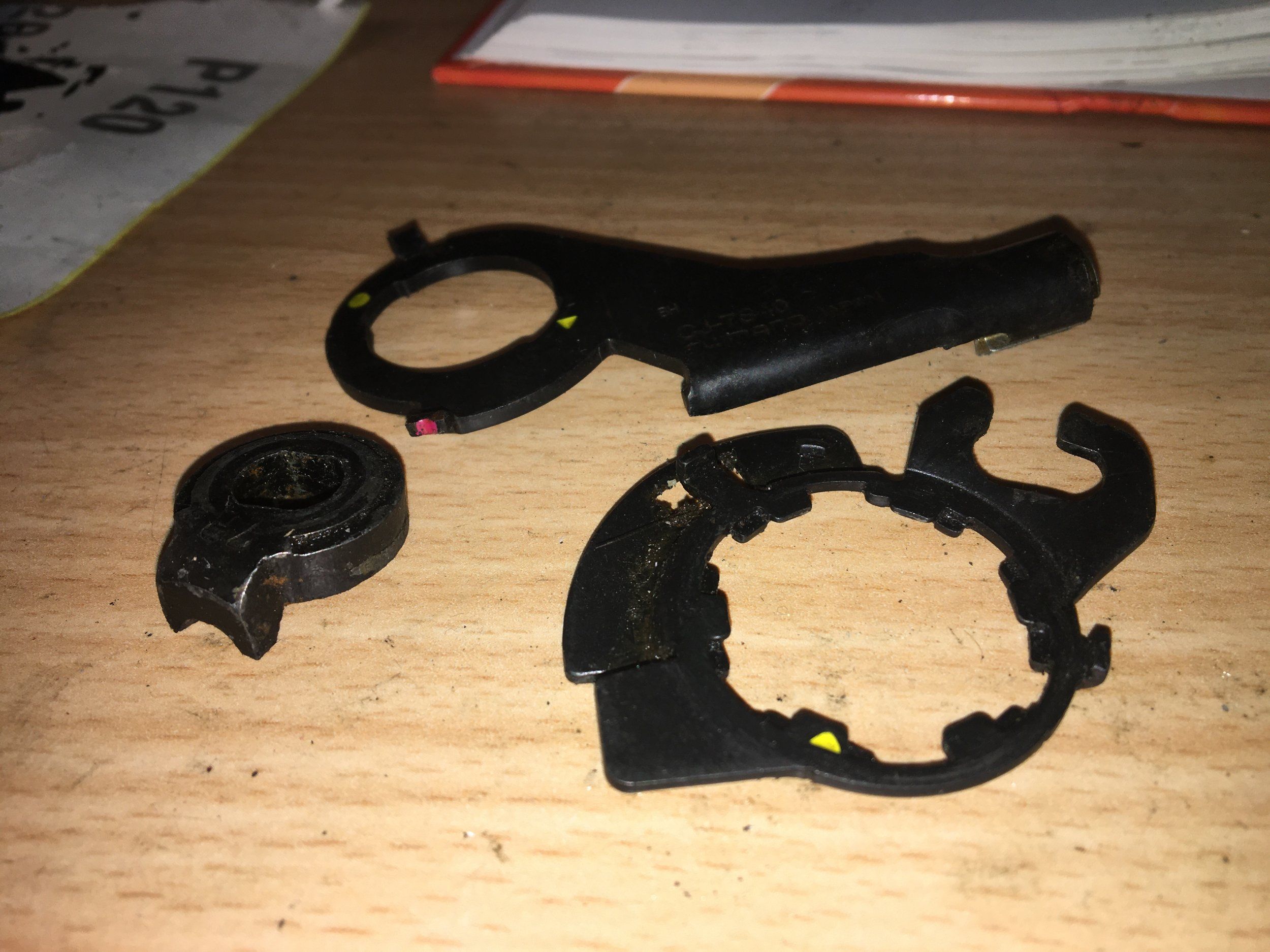 Hjulet var ditsatt bak och fram, och en av de svarta runda delarna satt löst och dinglade. Har väldigt svårt att hitta något när jag försöker leta själv!