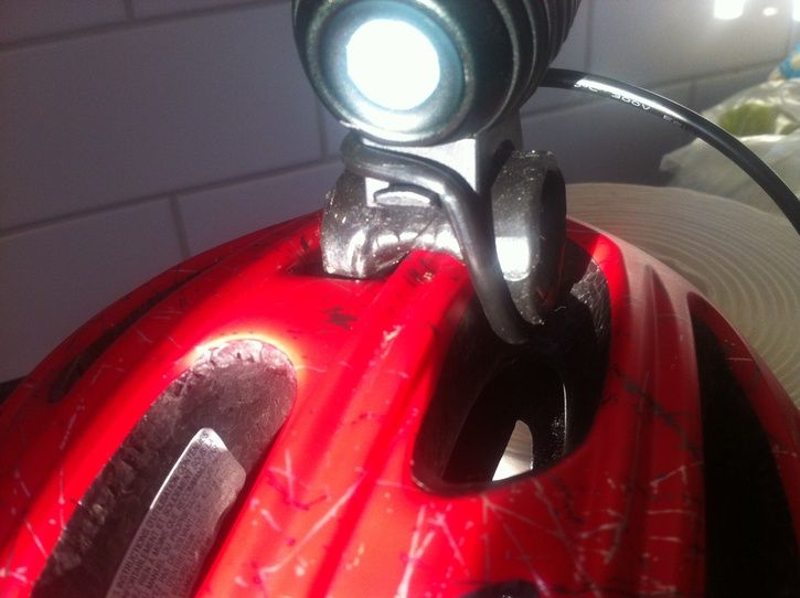 Just nu siter lampan med kardborre direkt på hjälmen, inte helt optimalt.