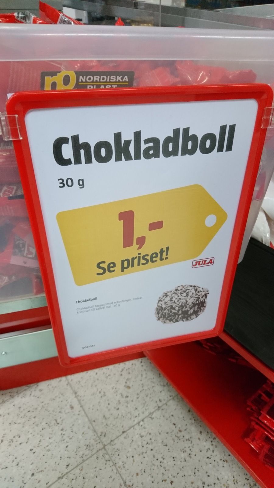 Dyrt. Jula har chokladbollar för 1:-.