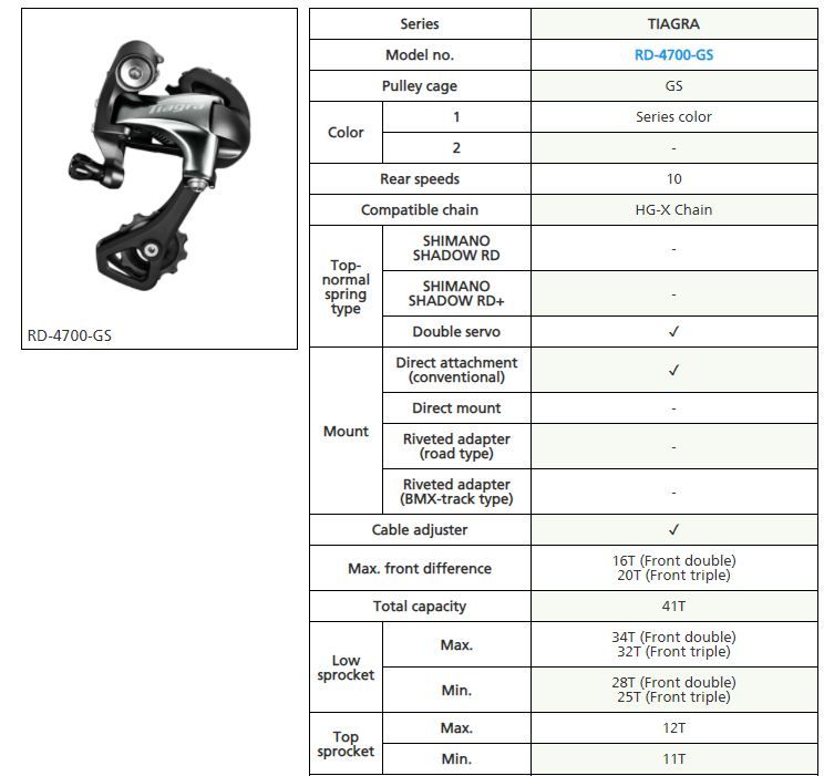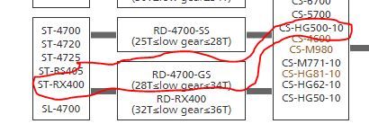 4700-GS gillar dock 28T som minst bak enligt bilden. Och max 34T. Vad har du för kassetter du vill köra med idag?