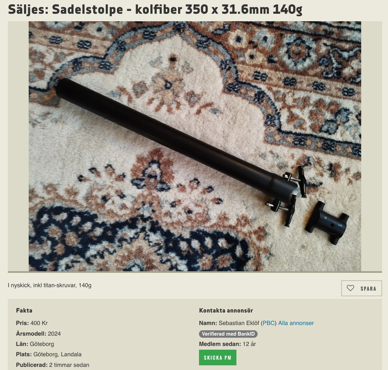 Är den inte lite kort? Den syns ju knappt.Sadelstolpen? Är det ingen som sett styrstammen?