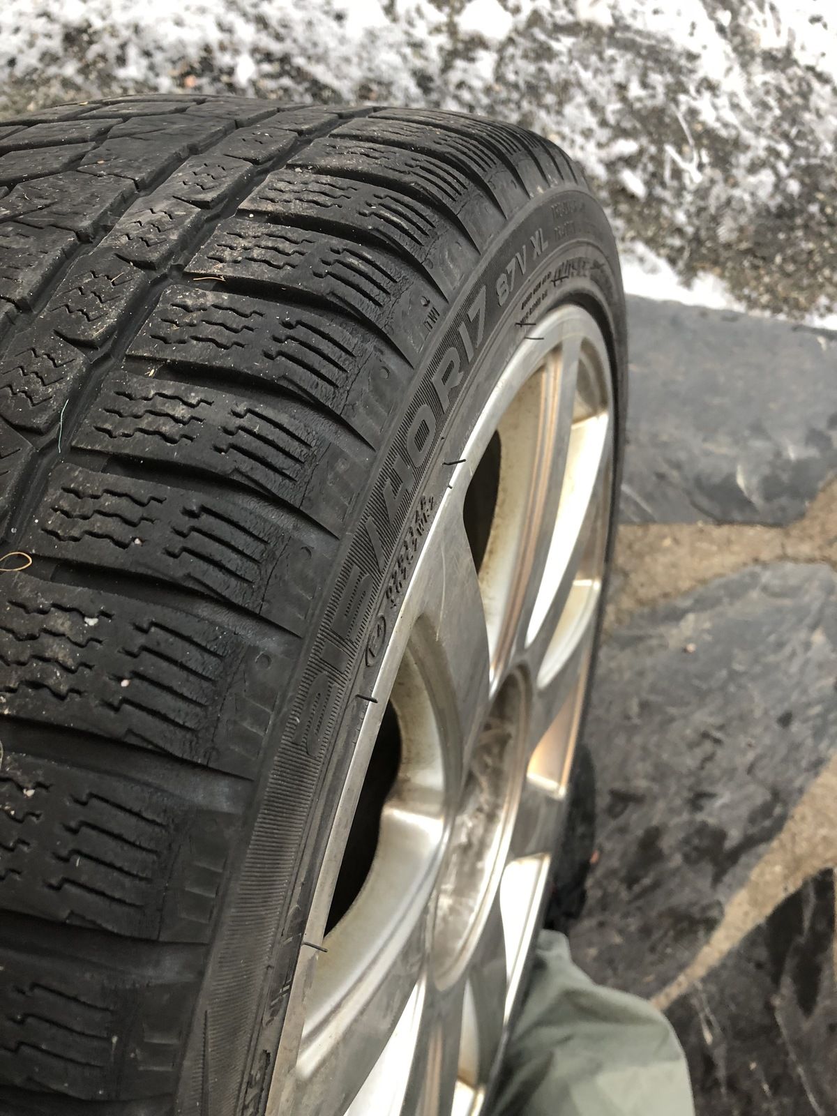 ursäkta ot-upprepningen, tog en bild på vad det innebär med 215-däck på sjutums fälg. alltså 40 mm bredare däck än fälg. buktar då 20 mm på varje sida, fälgen tar ca 10 av dessa.