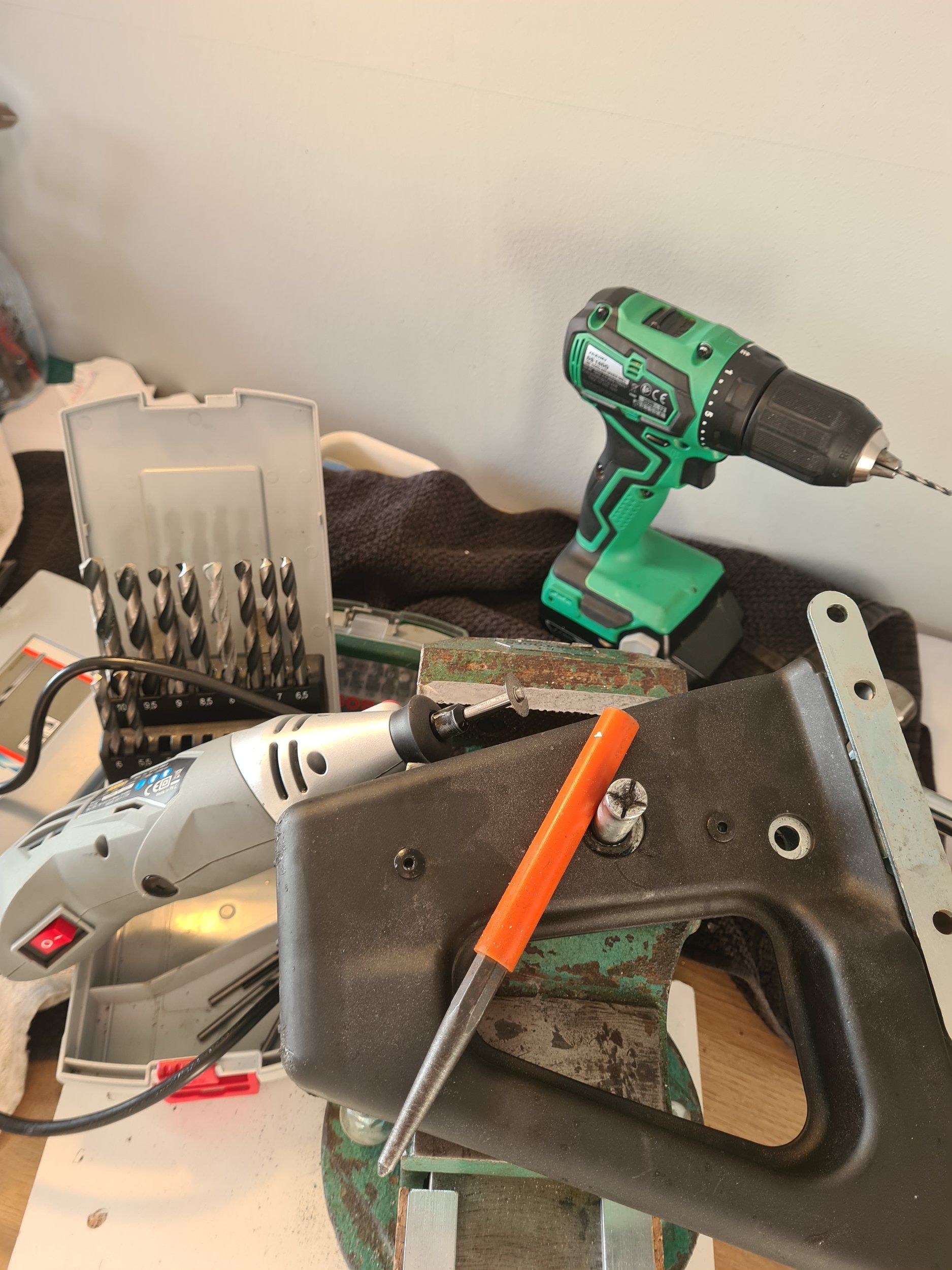 Otroligt mycket hårdare material i grispitten än i skruven jag först borrade i så allt jag har nu är avbrutna borr och ett naggat tålamod...