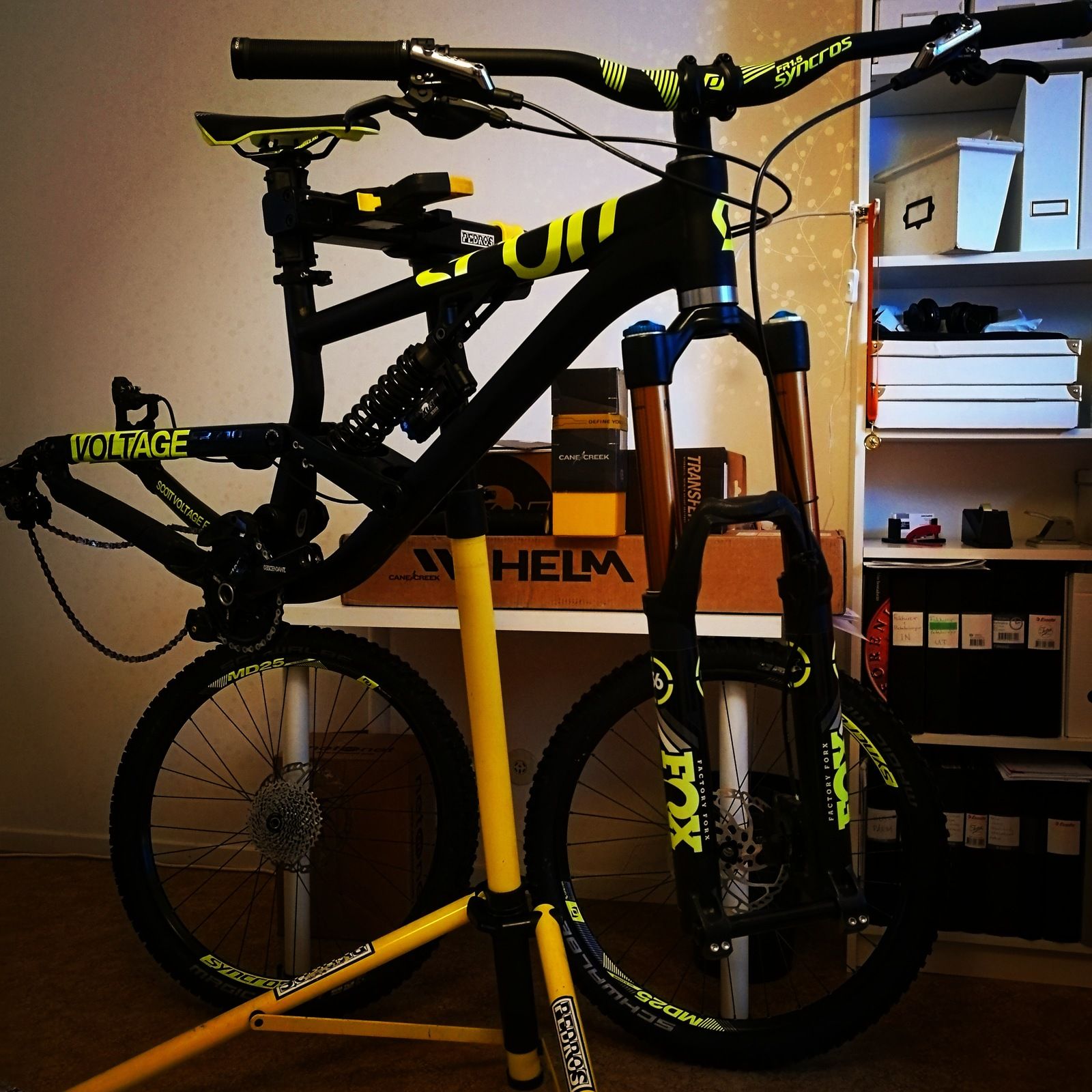 jag försöka trolla bort allt det gula på ramen. ? F36:an är en 2015 Factory Series 36 FLOAT 27.5 180 FIT RC2. Har inte hunnit fundera på pris än men ge mig ett vettigt bud så är den din![]()