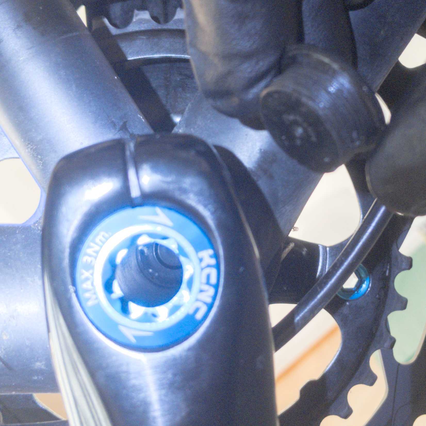 1. När jag tog av vänstra vevarmen så lossnade det något som jag trodde var en packning först. Men där var en pytteliten metallpinne också. Grönt i bilden.
