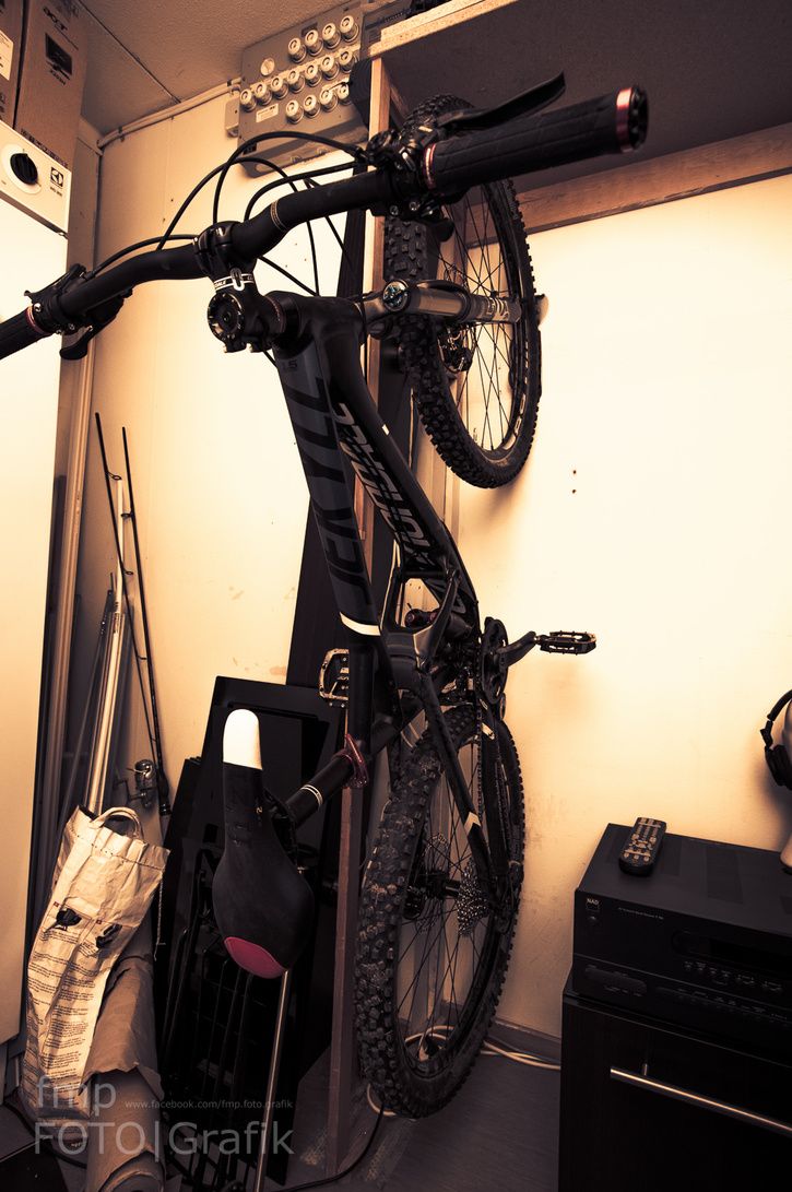 Återkommer senare med bild när jag fått upp en lösning på hur jag vill hålla fast cykeln mot väggen. Funderar på om belastningen blir för stor på pefalen om man fäster den där. Att vevlagret tar stryk?