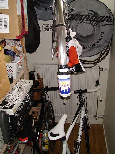 Hmm... ändå saknar jag två cyklar på den där bilden.. snitsig cykelstång hur som men trots denna optimering kan jag ifrågasätta er fördelning av materiel, fordon och manskap mellan disponibla ytor.
