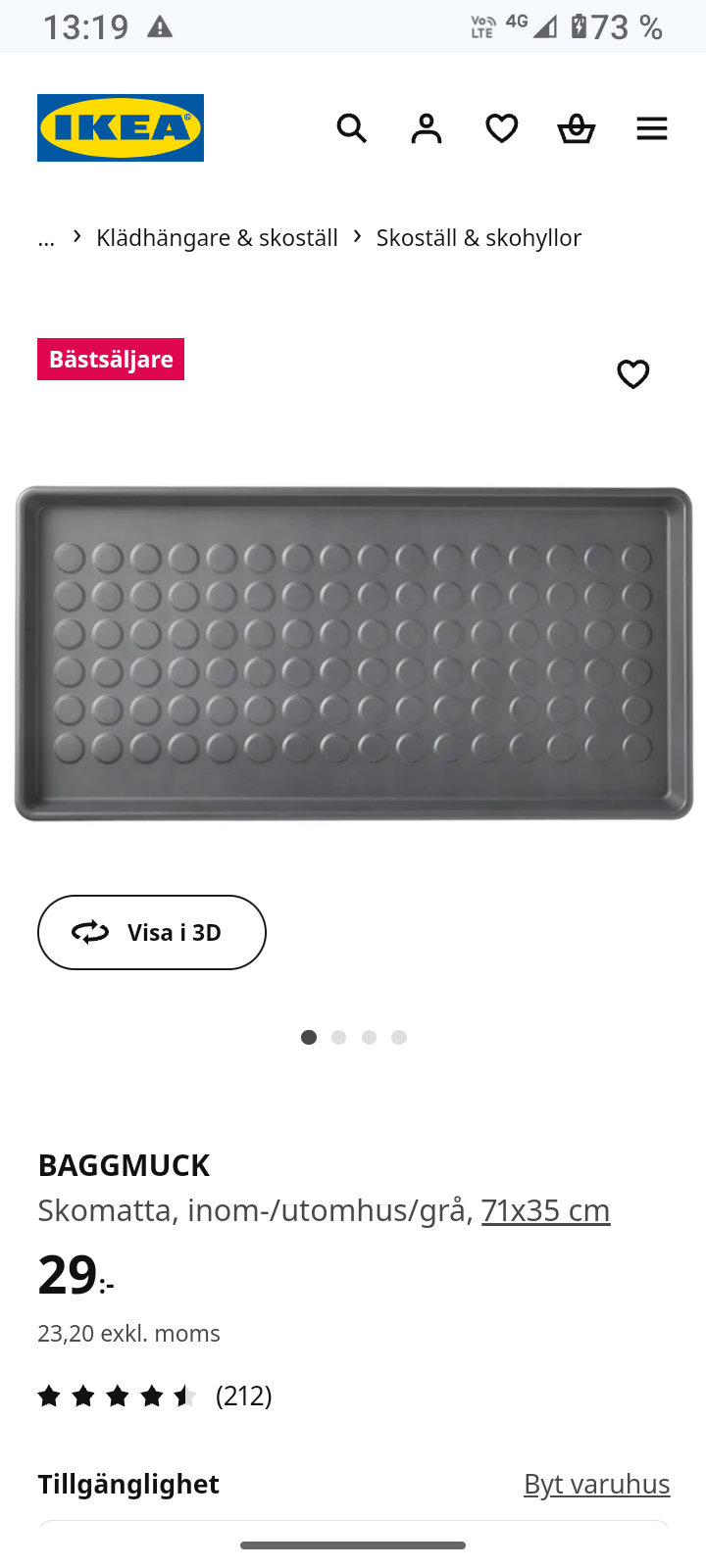 Jula Hard Head Skomatta 75x38 cm 39⁹⁰