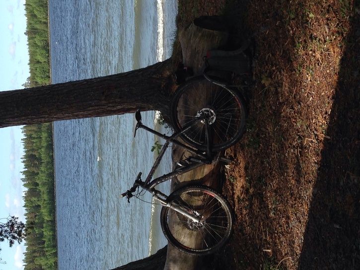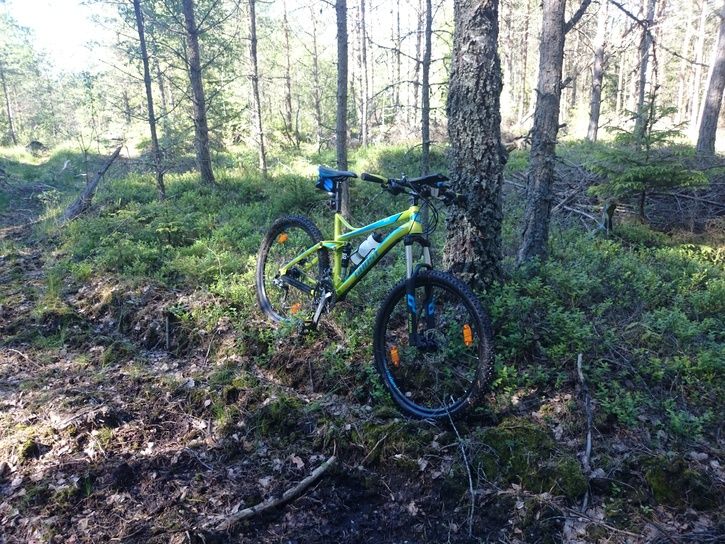 Ska inte verka blödig men cykelns position kom sig av ett misslyckat dropp som slutade med en totalbottnad framgaffel som i sin tur förpassade mig in i bergknallen till höger och cykeln upp PÅ trädet.