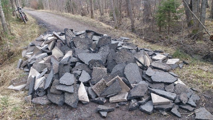 Idag blev det en 2,5 timmar skogsvandring med familjen, småfix med fådd cykel samt en tur med hojen. Man blir rätt sur när man ser sånt här. Troligtvis de där billiga sten/ - asfaltsläggarna som dyker upp ibland.