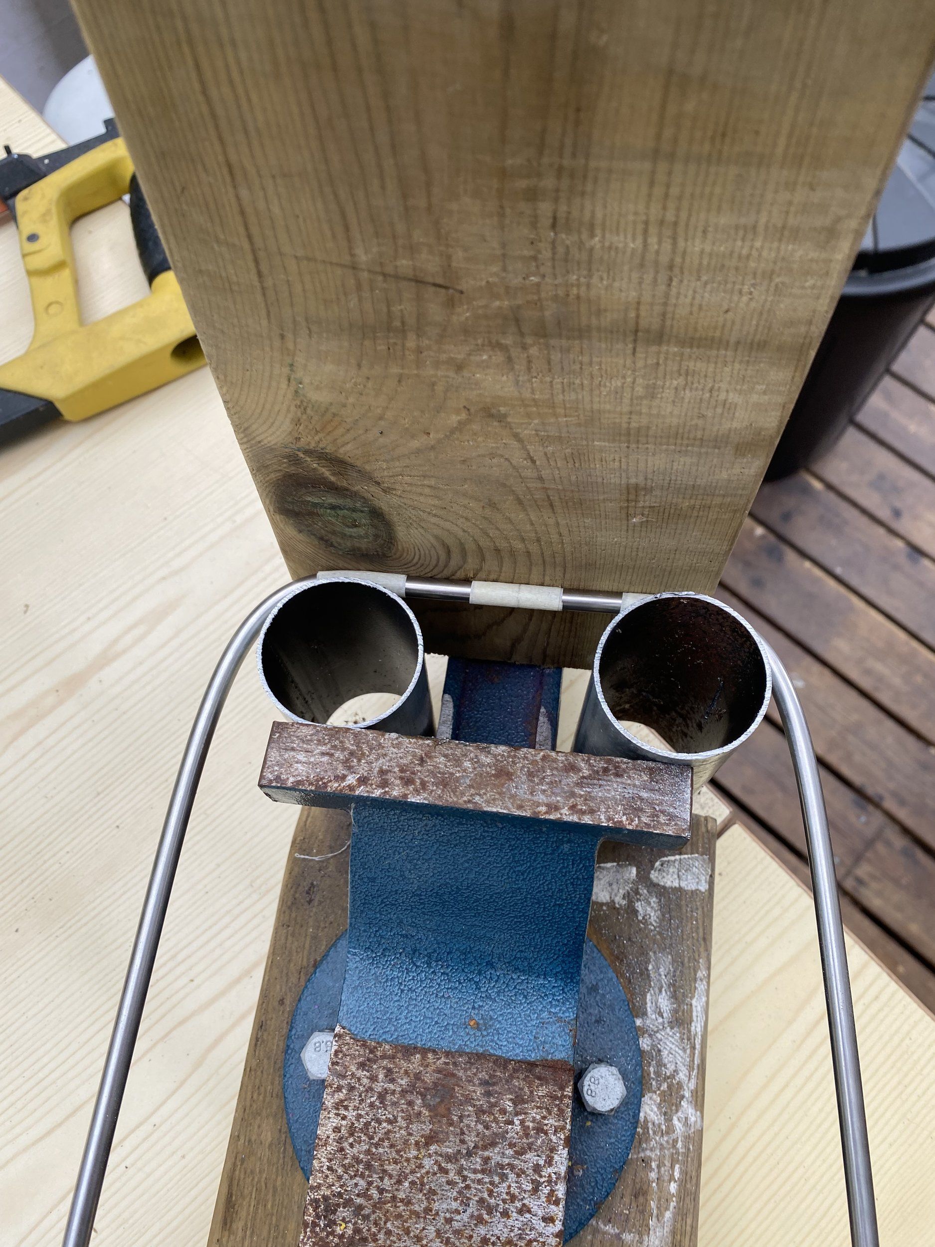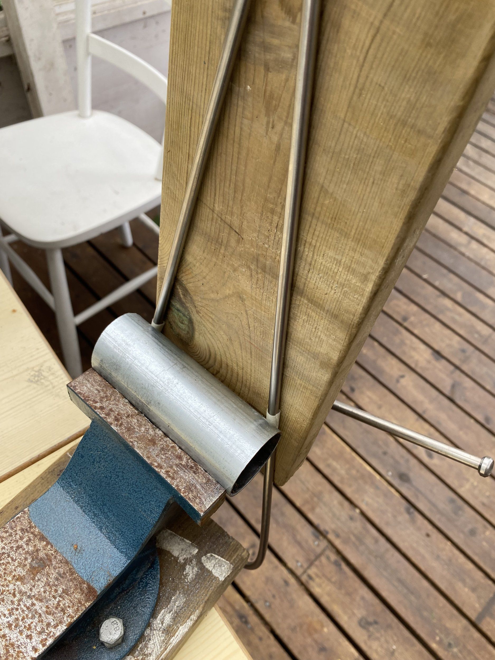 Riktigt stiligt!En bit rostfri stång och lite delar som fanns hemma och så en timme senare, voilà!