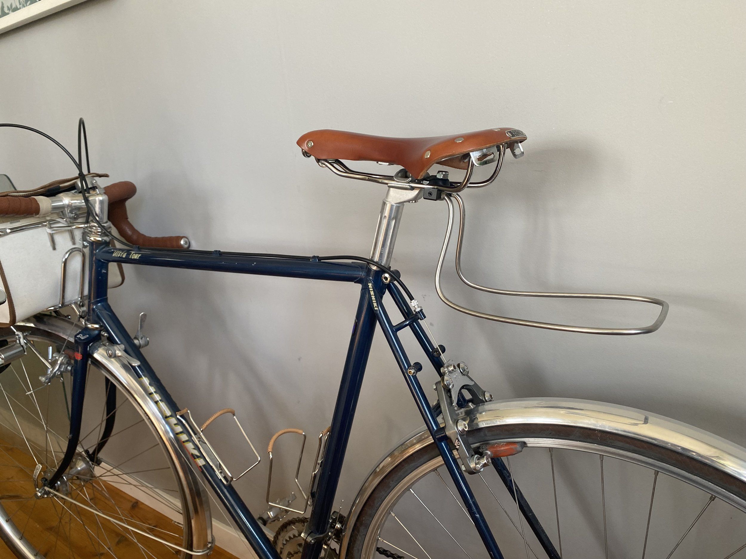 Jisses så stiligt! Är det rimligt att bli sugen på att bygga en randonneur när man aldrig cyklar längre än två kilometer i stöten?En bit rostfri stång och lite delar som fanns hemma och så en timme senare, voilà!