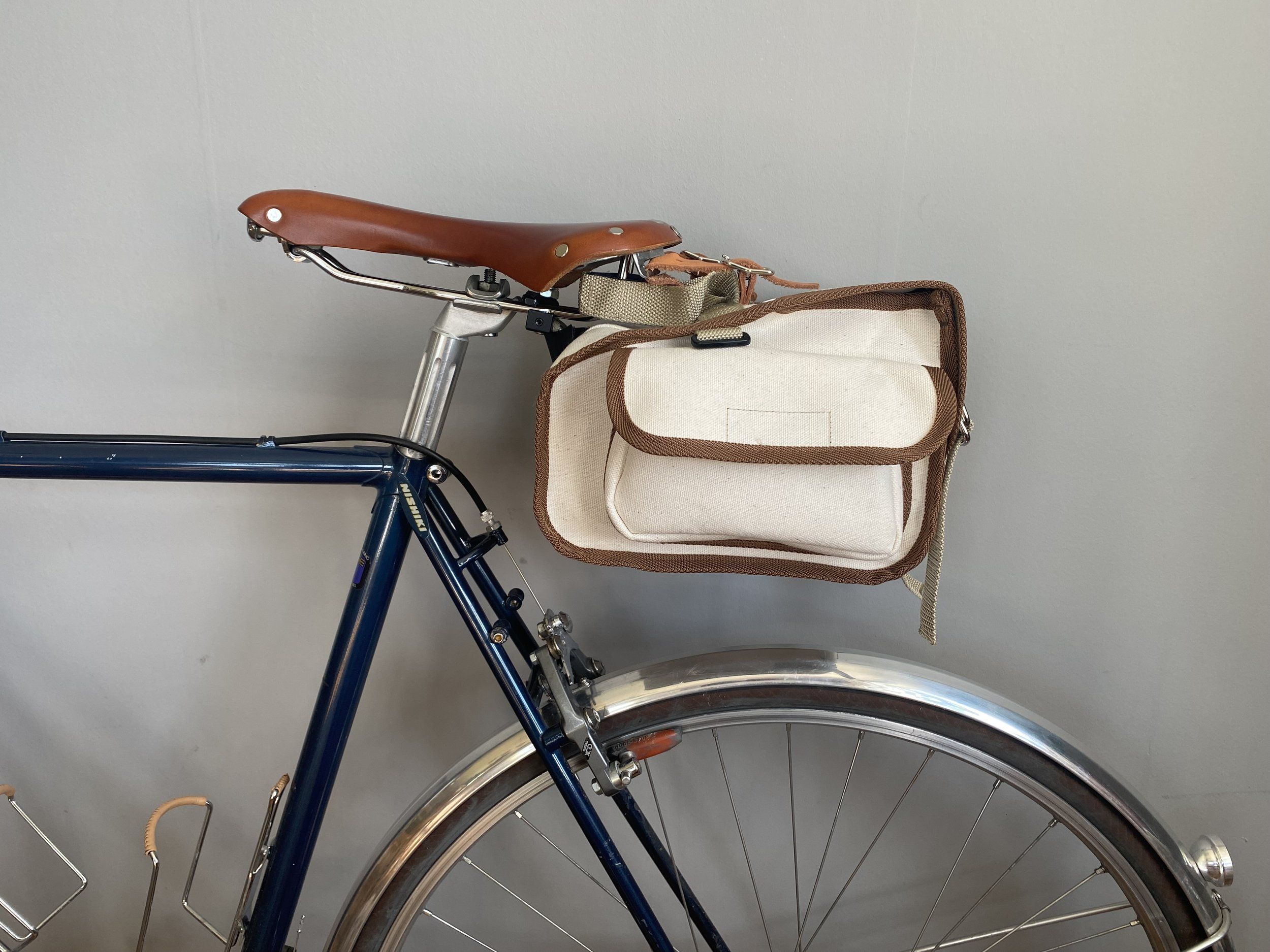 Infästningen består av underdelen till en Carradice Bagman Quick release och en söndersågad sadelinfästning till en sadelstolpe.Jisses så stiligt! Är det rimligt att bli sugen på att bygga en randonneur när man aldrig cyklar längre än två kilometer i stöten?
