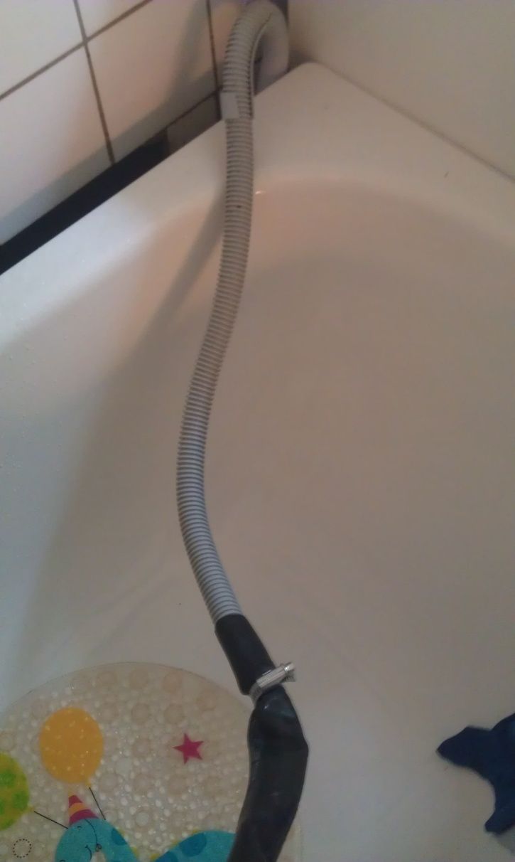> Varför hänger du inte utkastslangen i toan? För