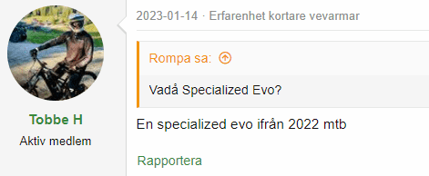 Slår i titt som tätt och är också sugen på testa kortare vevarmar. Har 175mm race face aeffect idag på min orbea occam h20 2021. Vad passar rätt av på denna cykel utan att byta vevlager och annat? Tänker 165mm men är det för stort steg?